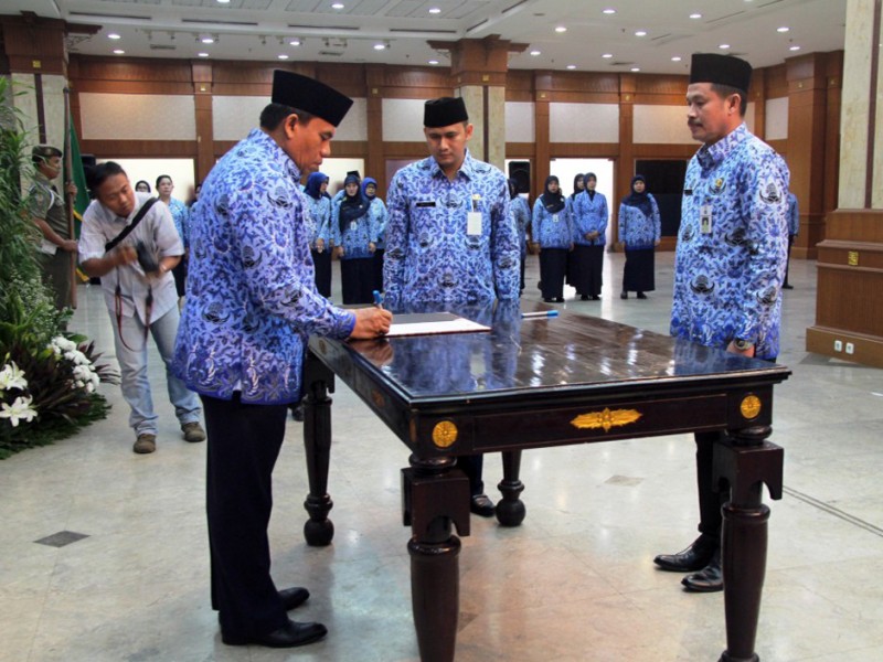 Sekretaris Daerah Provinsi DKI Jakarta, Saefullah mengukuhkan Dewan Pengurus Korpri Jakarta Barat dengan Ketua Korpri Jakarta Barat periode 2015-2020, M. Zen siang ini bertempat di Ruang Serbaguna Ali Sadikin Kantor Walikota Jakarta Barat, Selasa(04/08/2015). Turut hadir Walikota Jakarta Barat H.M. Anas Effendi dan para Kepala SKPD. (Foto : Sudin Kominfo dan Kehumasan Jakarta Barat)