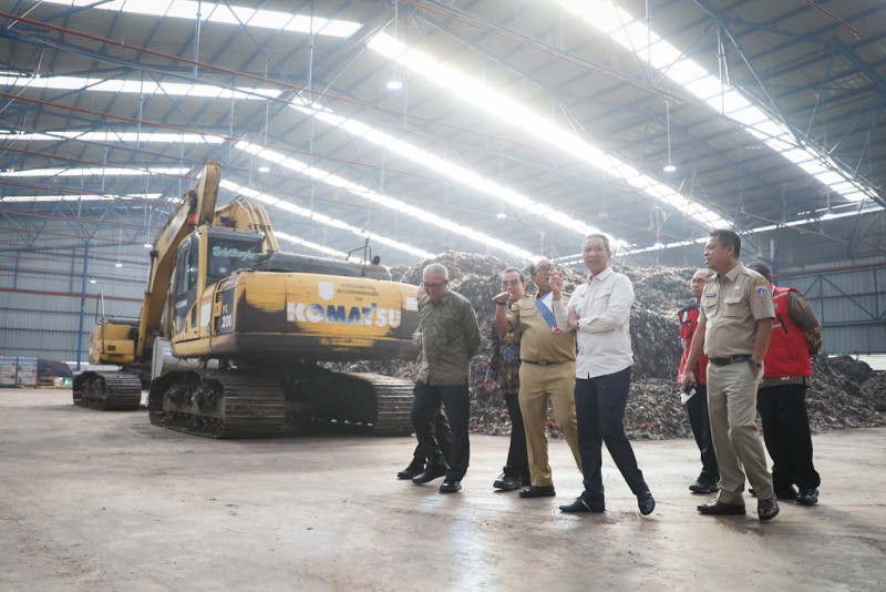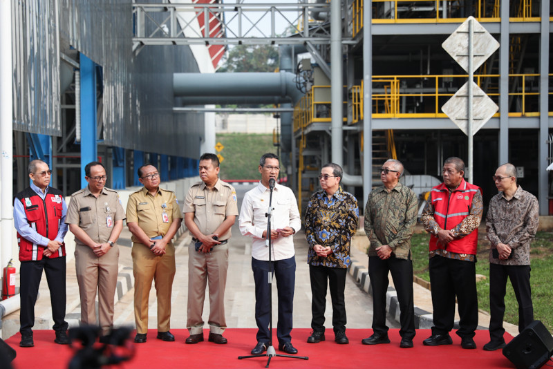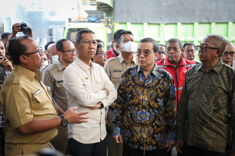 Penjabat (Pj) Gubernur DKI Jakarta, Heru Budi Hartono melepas secara simbolis pemberangkatan truk pengangkut bahan bakar alternatif atau refuse derived fuel (RDF) di RDF Plant TPST Bantar Gebang, Bekasi, Jawa Barat, Selasa (27/6). Sebanyak 20 truk yang mengangkut 80 ton RDF diberangkatkan menuju PT Indocement Tunggal Perkasa Tbk dan PT Solusi Bangunan Indonesia.