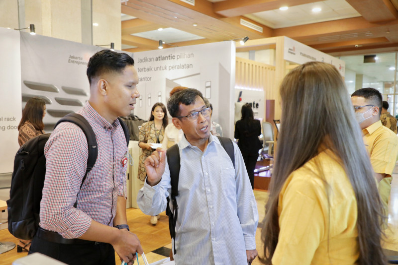 Dinas Perindustrian, Perdagangan, Koperasi, Usaha Kecil dan Menengah (PPKUKM) Provinsi DKI Jakarta kembali menggelar Business Matching kelima tahun 2023 di lantai dasar Blok G, Gedung Balai Kota DKI Jakarta, Gambir, Jakarta Pusat, Senin (3/7). Kegiatan ini digelar untuk Peningkatan Penggunaan Produk Dalam Negeri (P3DN) dengan mempertemukan Penjabat Pembuat Komitmen (PPK) dan Penjabat Pengadaan Barang di lingkungan Pemprov DKI Jakarta.