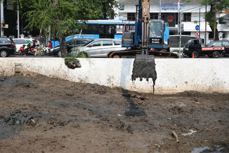 Sudin SDA Jakpus Keruk Lumpur Kali Ciliwung Segmen Pasar Baru