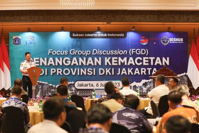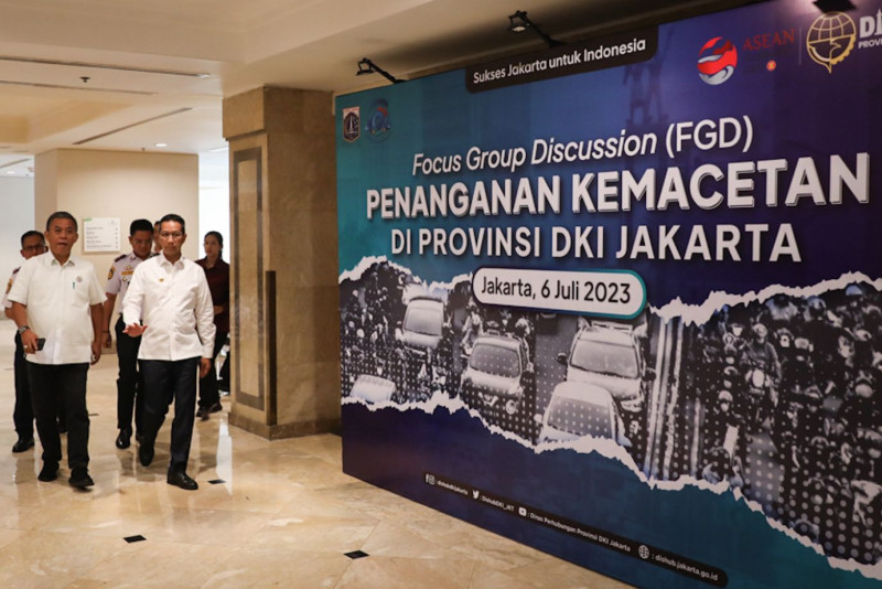 Penjabat (Pj) Gubernur DKI Jakarta, Heru Budi Hartono membuka Focus Group Discussion (FGD) Penanganan Kemacetan di Provinsi DKI Jakarta di Hotel Borobudur, Gambir, Jakarta Pusat, Kamis (6/7). Kegiatan FGD dilakukan untuk mencari solusi dari berbagai pihak untuk mengatasi masalah kemacetan di Jakarta. Hadir dalam FGD ini Ketua DPRD DKI Jakarta, Prasetyo Edi Marsudi dan sejumlah stakeholder dalam bidang transportasi.