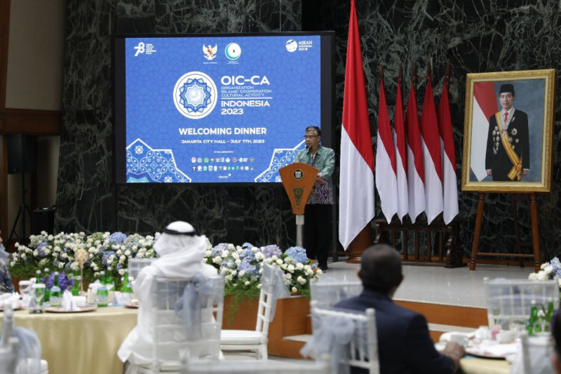 Pemerintah Provinsi DKI Jakarta menggelar acara Welcoming Dinner OIC-CA Indonesia 2023 di Balai Agung, Balai Kota DKI Jakarta, Jumat (7/7) malam. Hadir dalam acara ini Wali Kota Jakarta Pusat, Dhany Sukma mewakili Pj Gubernur DKI Jakarta, Sekretaris Deputi Bidang Pemberdayaan Pemuda Kemenpora RI, Esa Sukmawijaya dan Sekretaris Jenderal Organization Islamic Cooperation - Cultural Activity (OIC-CA) Bidang Kemanusiaan, Sosial dan Budaya, Tarig Bakheet.
