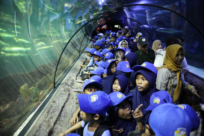 Dharma Wanita Persatuan (DWP) Provinsi DKI Jakarta mengajak anak-anak Panti Sosial Asuhan Anak (PSAA) Putra Utama 1 berwisata ke Ancol Taman Impian, Jakarta Utara, Senin (10/7). Sebanyak 100 anak panti asuhan mengikuti wisata edukasi ke Sea World, Ocean Dream Samudra dan Dolphin Show.