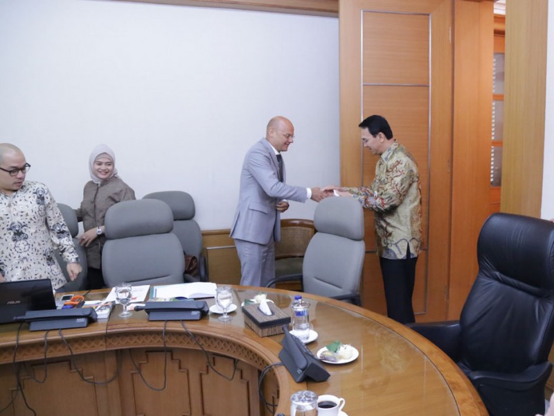 Gubernur DKI Jakarta, Basuki Tjahaja Purnama menerima delegasi Nuffic Neso Indonesia di Balaikota DKI Jakarta, Rabu (05/08/2015). Dalam kesempatan tersebut dilakukan pembahasan terkait program Living Lab Water Indonesia – The Netherlands (LLWI-NL) yang akan disinergikan dengan program kerjasama Dutch Training and Exposure Program (DUTEP) antara Bappeda DKI Jakarta dan Pemerintah Kota Rotterdam.(Foto: Yopie / Beritajakarta.com)
