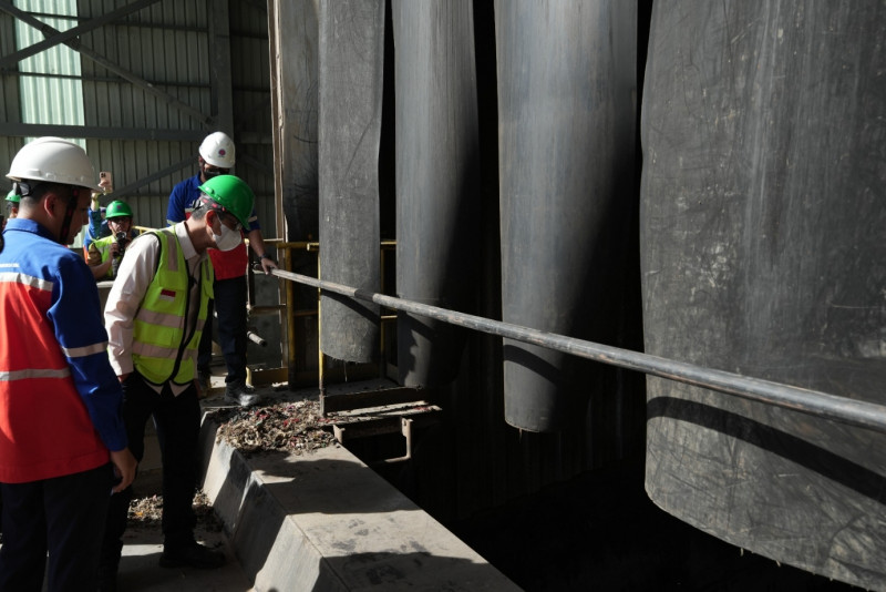 Penjabat (Pj) Gubernur DKI Jakarta, Heru Budi Hartono meninjau hasil olahan sampah Refuse Derived Fuel (RDF) sebagai bahan bakar di PT Indocement, Gunung Putri, Kabupaten Bogor, Selasa (11/7). Kunjungan ini dilakukan untuk memastikan hasil olahan dari Tempat Pengolahan Sampah Terpadu (TPST) Bantargebang dapat diaplikasikan secara tepat guna.