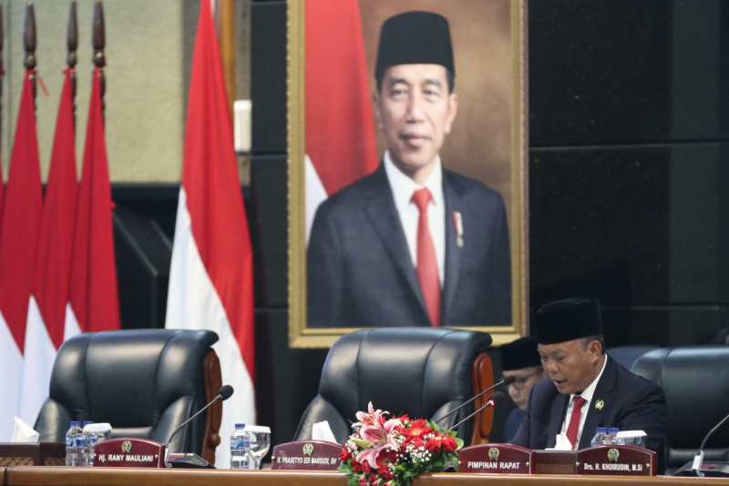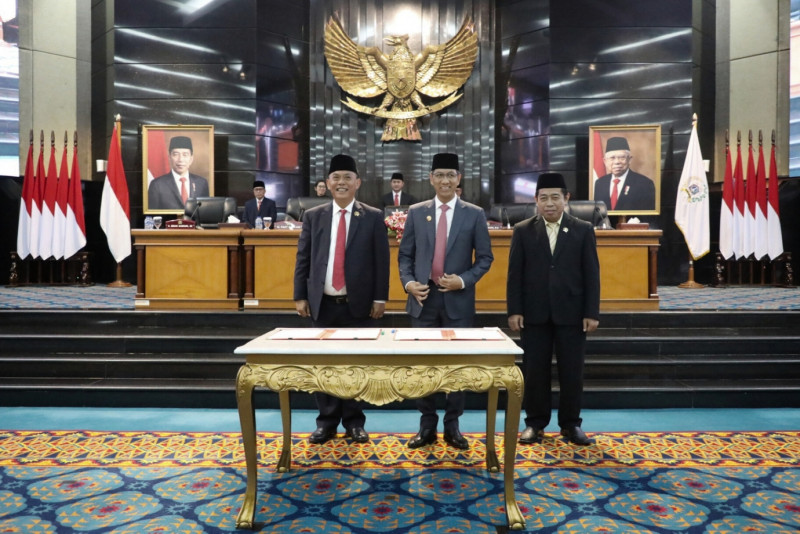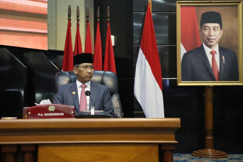 Penjabat (Pj) Gubernur DKI Jakarta, Heru Budi Hartono menghadiri Rapat Paripurna DPRD DKI Jakarta di Gedung DPRD DKI Jakarta, Jalan Kebon Sirih, Gambir, Jakarta Pusat, Rabu (12/7). Rapat paripurna ini beragendakan penyampaian hasil pembahasan subtansi dan penandatangan berita acara kesepakatan atas Rancangan Peraturan Daerah (Raperda) tentang Rencana Tata Ruang Wilayah (RTRW) 2022 - 2042.