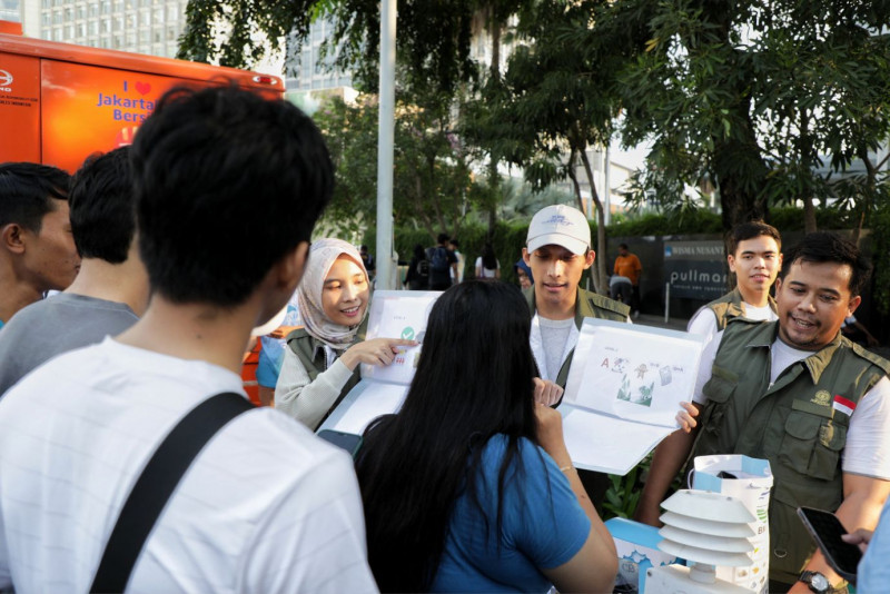 Dinas Lingkungan Hidup (LH) DKI Jakarta menggelar Mini Festival Ayo Birukan Lagi Langit Jakarta pada kegiatan hari bebas kendaraan bermotor (HBKB) di kawasan Bundaran HI, Jakarta Pusat, Minggu (16/7). Kegiatan dengan tema “Bersinergi Kita Birukan Langit Jakarta” tersebut mengajak seluruh lapisan masyarakat untuk terus menjaga kualitas udara dengan berbagai cara.