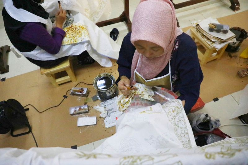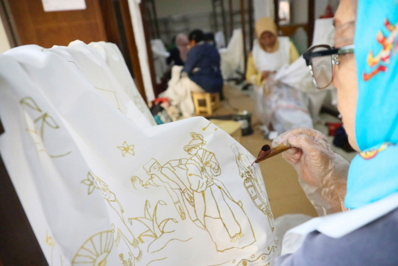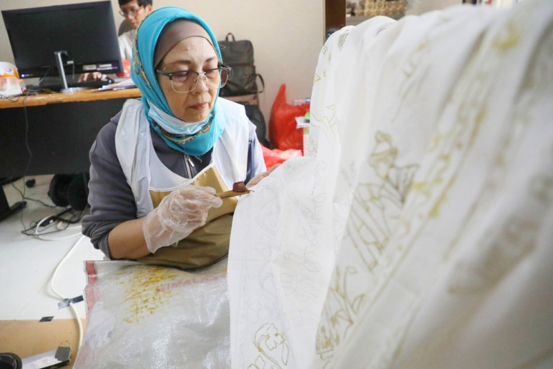 Dinas Perindustrian, Perdagangan, Koperasi, Usaha Kecil Menengah (PPKUKM) DKI Jakarta, mengikuti pelatihan membatik Betawi di Gedung Tempat Kumpul Kreatif (TKK) Jalan Percetakan Negara 2, Johar Baru, Jakarta Pusat, Senin (17/7). Dalam pelatihan ini peserta diajarkan dasar-dasar pembuatan batik Betawi mulai dari membuat pola, mencanting, pewarnaan, hingga pengenalan harga pokok produksi. Pelatihan ini diikuti 10 peserta mulai dari tanggal 11 hingga 25 Juli 2023.