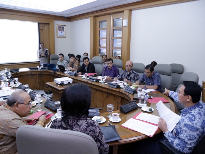 Gubernur DKI Jakarta, Basuki Tjahaja Purnama memimpin rapat rutin Badan Koordinasi Penataan Ruang Daerah (BKPRD) Provinsi DKI Jakarta, di Balaikota DKI Jakarta, Kamis (6/8/2015). Kali ini, dilakukan pembahasan terkait permohonan pengalihan zonasi dan perizinan pelaksanaan reklamasi pulau. (Foto : Yopie/Beritajakarta.com)
