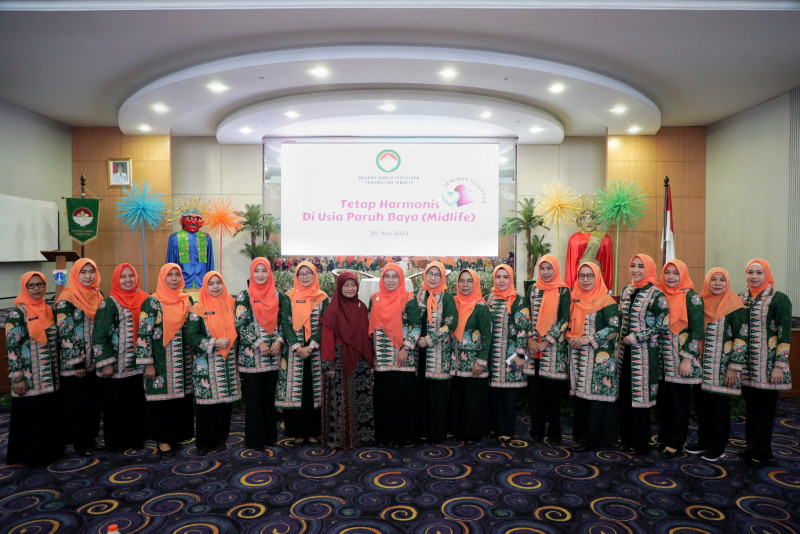 Dharma Wanita Persatuan (DWP) Provinsi DKI Jakarta menggelar seminar keluarga yang mengangkat tema \"Tetap Harmonis Di Usia Paruh Baya (Midlife Crisis)\" di Ruang Aula Bapenda Provinsi DKI Jakarta, Jalan Abdul Muis, Jakarta Pusat, Kamis (20/7). Seminar keluarga ini merupakan kegiatan tahunan yang diselenggarakan dalam rangka memberikan pemahaman dan pengetahuan kepada anggota DWP DKI khususnya, dalam menjaga keharmonisan rumah tangga.