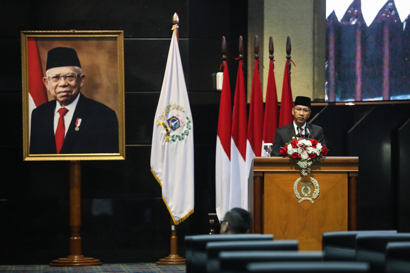 Penjabat (Pj) Gubernur DKI Jakarta, Heru Budi Hartono menyampaikan Rancangan Peraturan Daerah (Raperda) tentang Pertanggungjawaban Pelaksanaan Anggaran dan Pendapatan Belanja Daerah (P2APBD) Tahun 2022 saat Rapat Paripurna di Gedung DPRD DKI Jakarta, Jalan Kebon Sirih, Gambir, Jakarta Pusat, Kamis (20/7). Pemerintah Provinsi (Pemprov) DKI Jakarta terus berupaya meningkatkan akuntabilitas pengelolaan keuangan demi terwujudnya pengelolaan keuangan daerah yang transparan dan akuntabel.
