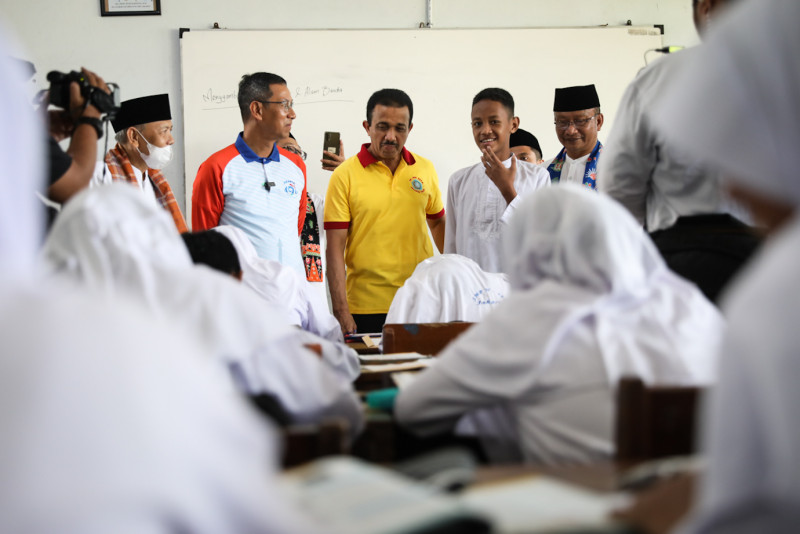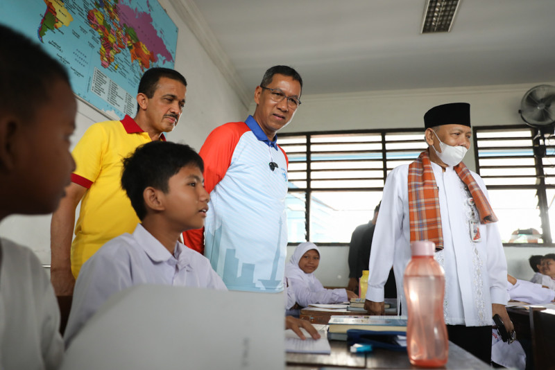 Penjabat (Pj) Gubernur DKI Jakarta, Heru Budi Hartono mengunjungi SMPN 188 Jakarta di Jalan Tanah Merdeka, Kelurahan Rambutan, Ciracas, Jakarta Timur, Jumat (21/7). Dalam kunjungannya Heru menyapa langsung para peserta didik kelas VII SMPN 188 Jakarta dan berpesan kepada para siswa untuk rajin belajar serta memanfaatkan waktu untuk hal-hal yang positif, terutama bagi siswa penerima Kartu Jakarta Pintar (KJP).