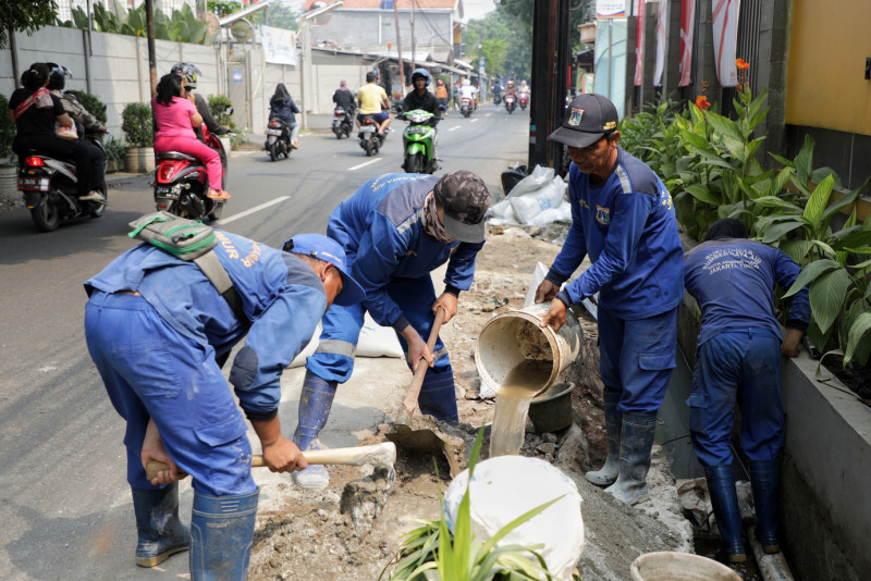 Sudin SDA Jakarta Timur Perbaiki Turap Saluran Air di Jalan Raya Poncol
