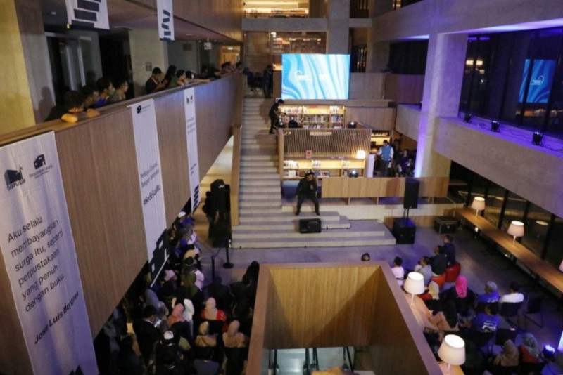 Dinas Perpustakaan dan Kearsipan (Dispusip) Provinsi DKI Jakarta menggelar acara Siniar Guru Gembul dan Night at The Library di Perpustakaan Jakarta, Taman Ismail Marzuki (TIM), Cikini, Menteng, Jakarta Pusat, Jumat (21/7). Acara ini mengusung tema \"Literasi Ruang dan Makna\" merupakan rangkaian Festival Literasi dan Sastra 2023. Dalam acara ini juga melaunching aplikasi Jaklitera, pengukuhan Duta Baca 2023 dan hiburan nyanyian puisi Jodhi Yudono serta Endah N Rhesa.