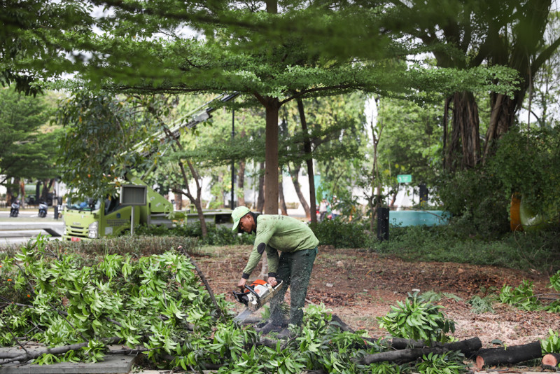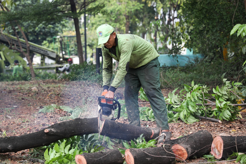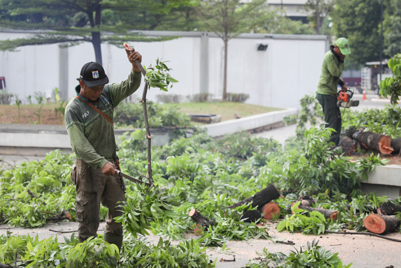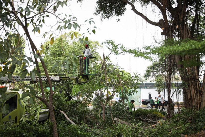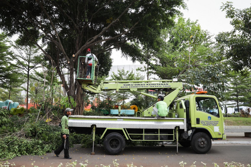 Sudin Tamhut Jakarta Timur Toping Pohon di Jakarta International Velodrome