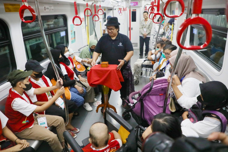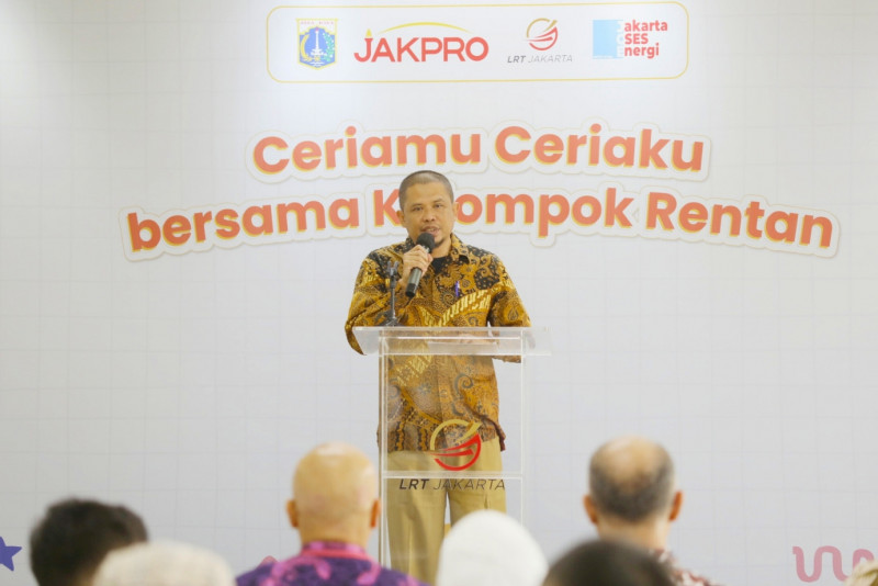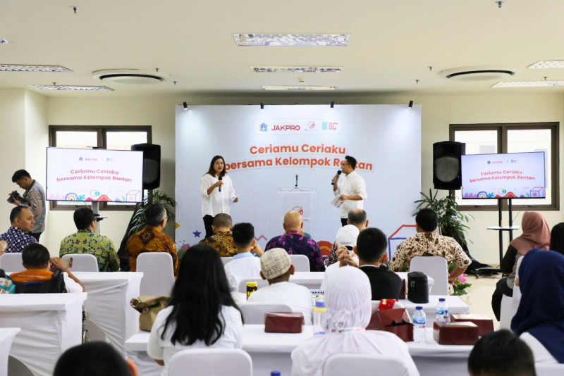 PT Jakarta Propertindo/Jakpro (Perseroda) bersama anak usahanya PT LRT Jakarta (LRTJ) dan PT Jakarta boss Energi mengadakan kegiatan Pemberdayaan Komunitas Rentan dengan tema \"Ceriamu Ceriaku Bersama Kelompok Rentan\", Senin (24/7). Melalui kegiatan ini, anak-anak pengidap kanker dari Yayasan Kasih Anak Kanker Indonesia dan SLB Saraswati diajak menikmati pengalaman menggunakan transportasi publik Lintas Raya Terpadu (LRT) dari Stasiun Velodrome hingga Stasiun Pegangsaan Dua.