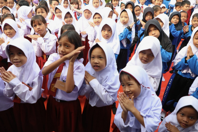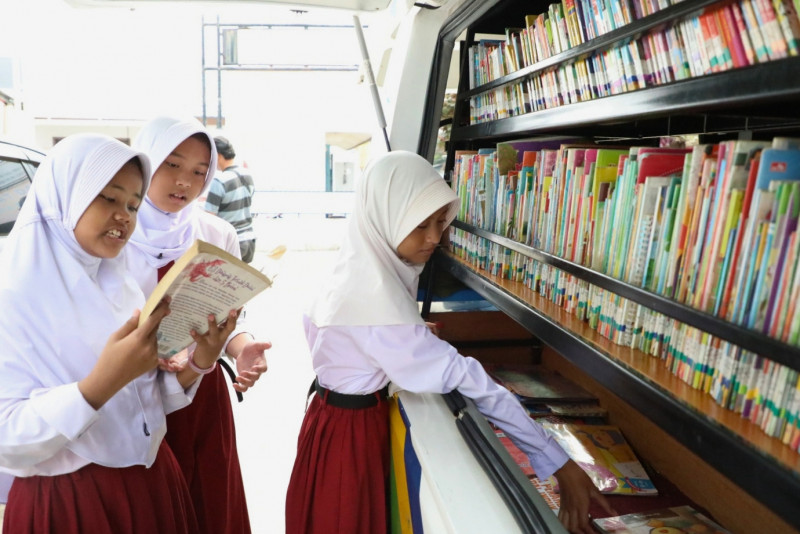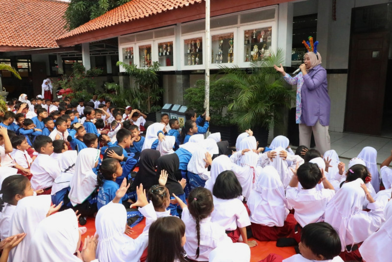 Suku Dinas Perpustakaan dan Kearsipan (Sudin Pusip) Jakarta Timur menggelar kegiatan Wisata LiterAsyik di SDN Kayu Putih 03, Jalan Papan, Pulo Gadung, Jakarta Timur, Selasa (25/7). Kegiatan ini dalam rangka memperingati Hari Anak Nasional dengan berbagai macam acara seperti pengenalan perpustakaan, memdongeng dan layanan perpustakaan keliling.