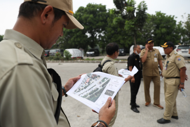 Tim persiapan pengadaan tanah rencana pembangunan akses jalan Rusun Rawa Bebek melakukan pendataan awal lokasi pembangunan di Jalan Inspeksi BKT Timur, Kelurahan Pulo Gebang dan Kelurahan Ujung Menteng, Cakung, Jakarta Timur, Selasa (25/7). Pemerintah Provinsi (Pemprov) DKI Jakarta akan membangun akses jalan sepanjang 3.320 meter dengan lebar 36 meter yang dibagi menjadi dua ruas jalan.