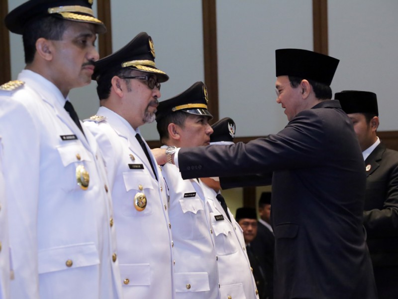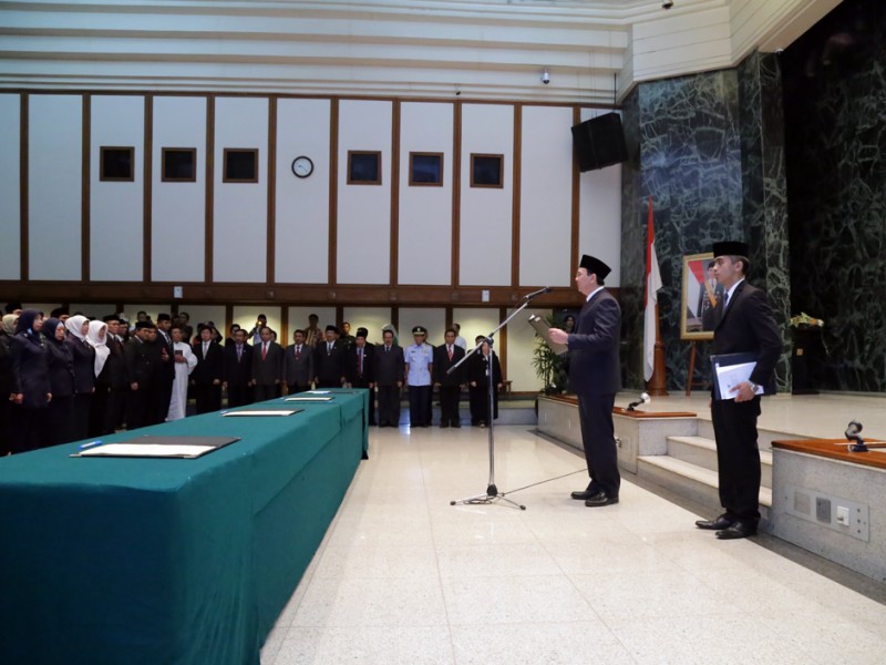 Gubernur DKI Jakarta, Basuki Tjahaja Purnama melantik 303 pejabat Eselon II, III, dan Eselon IV di Balaikota DKI Jakarta, Jumat (07/08/2015). Dalam kesempatan tersebut Basuki kembali mengingatkan Pegawai Negeri Sipil (PNS) di Pemprov DKI Jakarta agar jangan melakukan korupsi dan menerima gratifikasi. (Foto : Yopie/Beritajakarta.com)