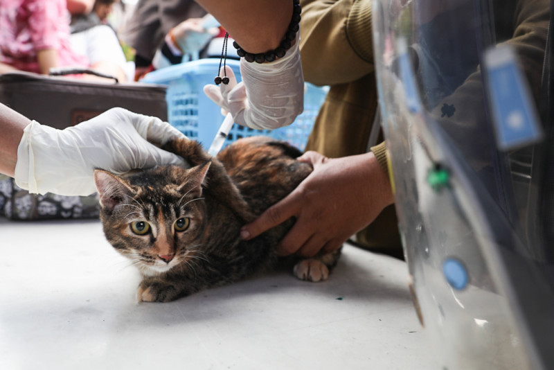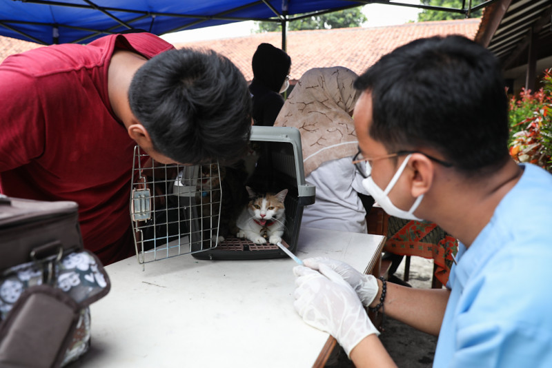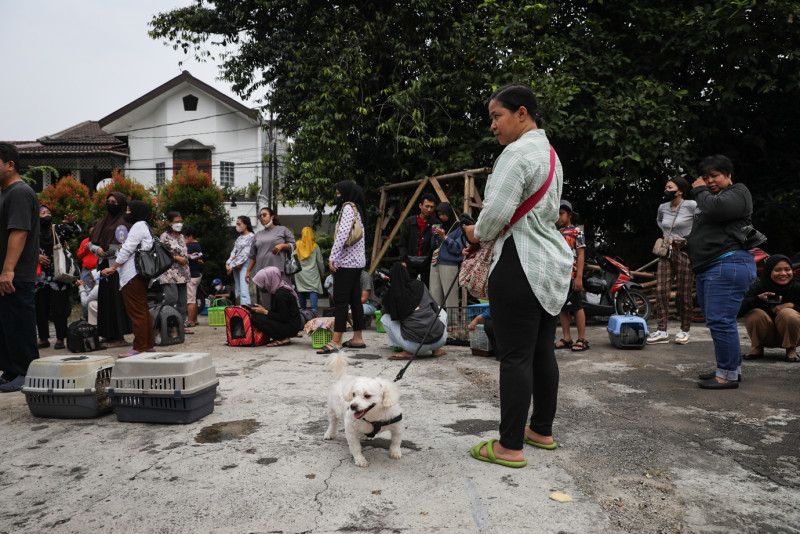 Suku Dinas Ketahanan Pangan, Kelautan, dan Pertanian (Sudin KPKP) Jakarta Selatan menggelar vaksinasi rabies gratis di Komplek Deplu, Jalan Abdul Majid Dalam III, Cipete Selatan, Cilandak, Jakarta Selatan, Rabu (26/7). Sebanyak 217 ekor hewan penular rabies (HPR) yang terdiri dari anjing, kucing, dan musang menjalani vaksinasi rabies di Cilandak.