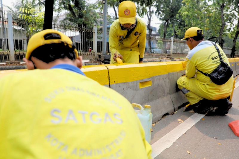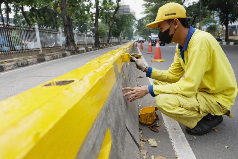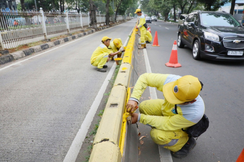 Beton MCB Jalur Transjakarta Jalan Letjen Suprapto Dicat Ulang