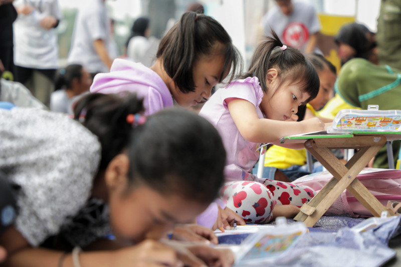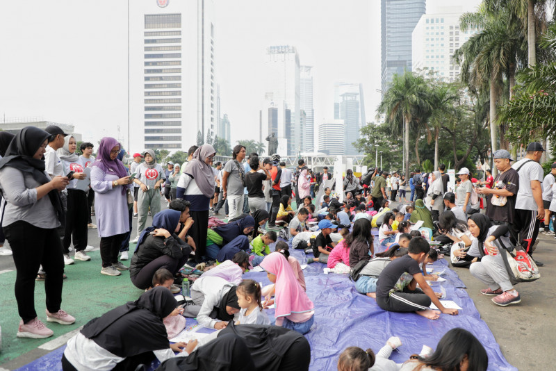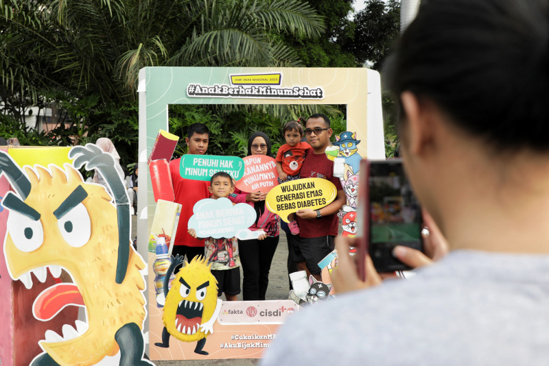 Forum Warga Kota (FAKTA) Indonesia merayakan Hari Anak Nasional dengan mengusung tema Anak Berhak Minum Sehat di area Hari Bebas Kendaraan Bermotor (HBKB), Jalan Jendral Sudirman, Jakarta Pusat, Minggu (30/7). Acara ini melibatkan lebih dari 100 anak-anak, orang tua dan masyarakat umum, dengan adanya acara ini ada bentuk himbauan kepada orang tua agar lebih peduli lagi terhadap asupan anak-anaknya, sebab susu-susu dalam kemasan belum tentu sehat dan baik untuk dikonsumsi.