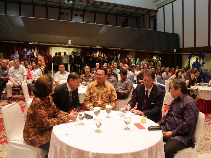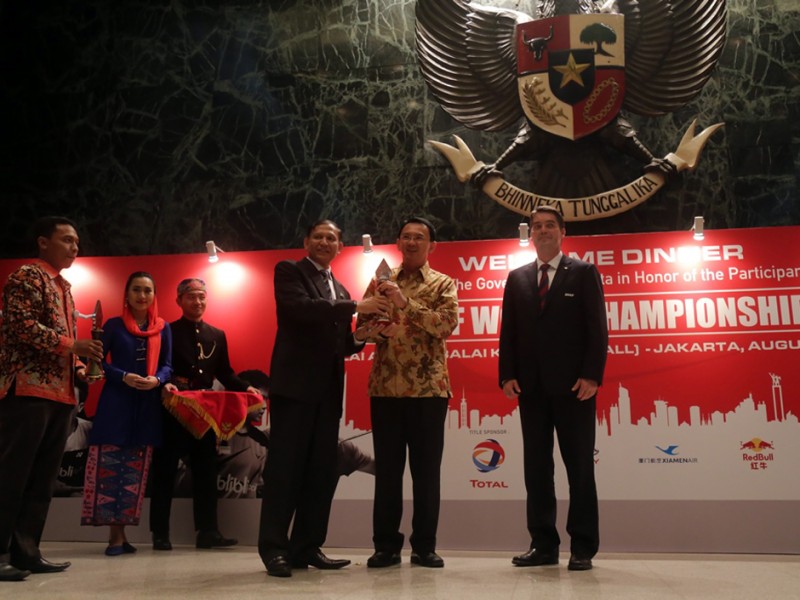 Gubernur DKI Jakarta, Basuki Tjahaja Purnama, menyambut kedatangan atlet dan official peserta kejuaraan bulutangkis Total BWF World Championships Tahun 2015. Secara khusus Basuki menggelar acara jamuan makan malam di Balaikota DKI Jakarta, Jalan Medan Merdeka Selatan, Gambir, Jakarta Pusat, Sabtu (08/08/2015) (Foto : Reza/Beritajakarta.com)