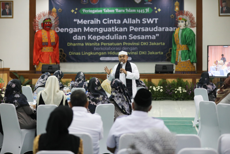 Dharma Wanita Persatuan (DWP) DKI Jakarta dan Dinas Lingkungan Hidup (LH) menggelar acara peringatan Tahun Baru Islam 1445 Hijriah di Aula Dinas LH, Kramat Jati, Jakarta Timur, Rabu (2/8). Dalam acara peringatan tersebut, DWP DKI Jakarta dan DWP Dinas LH memberikan santunan kepada 40 anak yatim dan meninjau sejumlah fasilitas pengolahan sampah di kantor Dinas LH.