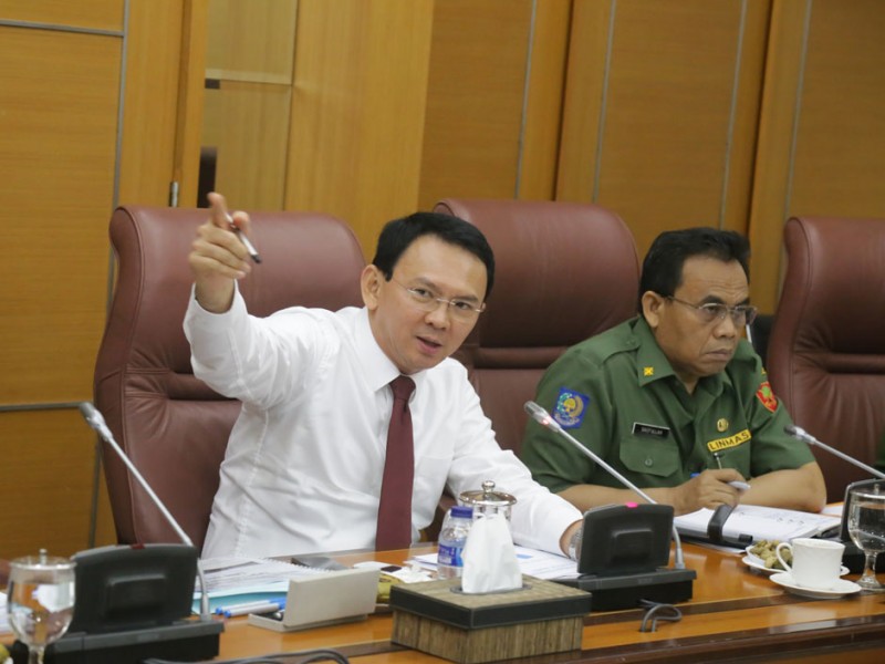 Gubernur DKI Jakarta, Basuki Tjahaja Purnama memimpin rapat bersama sejumlah Kepala Satuan Kerja Perangkat Daerah (SKPD), di Balaikota DKI Jakarta, Senin (10/08/2015). Sejumlah fokus pembahasan yang dilakukan yakni, terkait program Kartu Jakarta Pintar (KJP), perekonomian di Jakarta, serta Pelayanan Terpadu Satu Pintu (PTSP).(Foto: Reza / B eritajakarta.com)