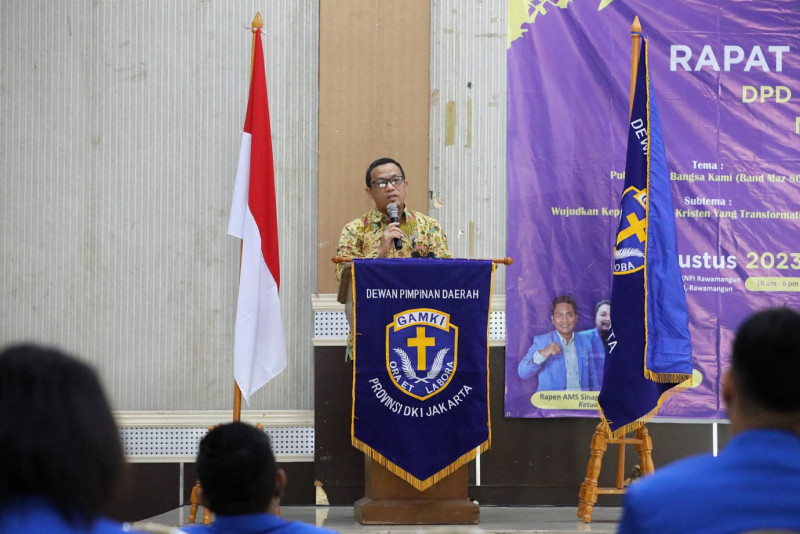 Sebanyak 100 peserta mengikuti kegiatan Rapat Kerja Dewan Pimpinan Daerah Gerakan Angkatan Muda Kristen Indonesia (DPD GAMKI) DKI Jakarta, di gedung KNPI DKI Jakarta, Sabtu (5/8). Kegiatan diwarnai dengan talkshow tentang usaha kecil menengah (UKM) dengan tema \"Tantangan pemuda Kristen Jakarta di era post pandemic, dalam lingkup karir profesional hingga peluang dunia usaha\".
