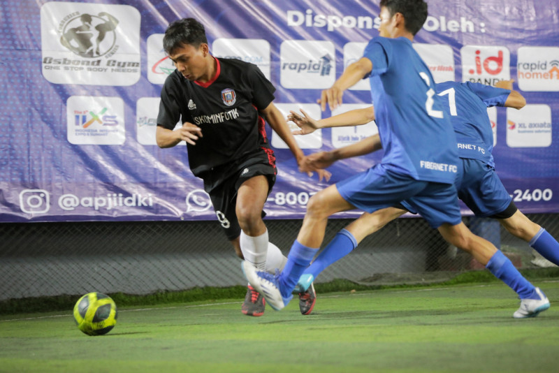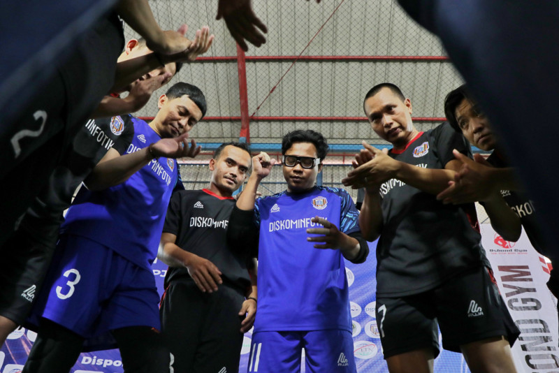 Tim Futsal Dinas Komunikasi, Informasi dan Statistik (Diskominfotik) Pemprov DKI Jakarta berhasil meraih juara ketiga di kejuaraan Fun Futsal APJII DKI 2023 di Lapangan Futsal Graha Intikom, Kuningan Barat, Mampang Prapatan, Jakarta Selatan, Minggu (13/8). Diskominfotik memastikan gelar juara tiga Fun Futsal APJII DKI 2023 usai menaklukkan Tim Futsal Fibernet melalui babak adu pinalti.