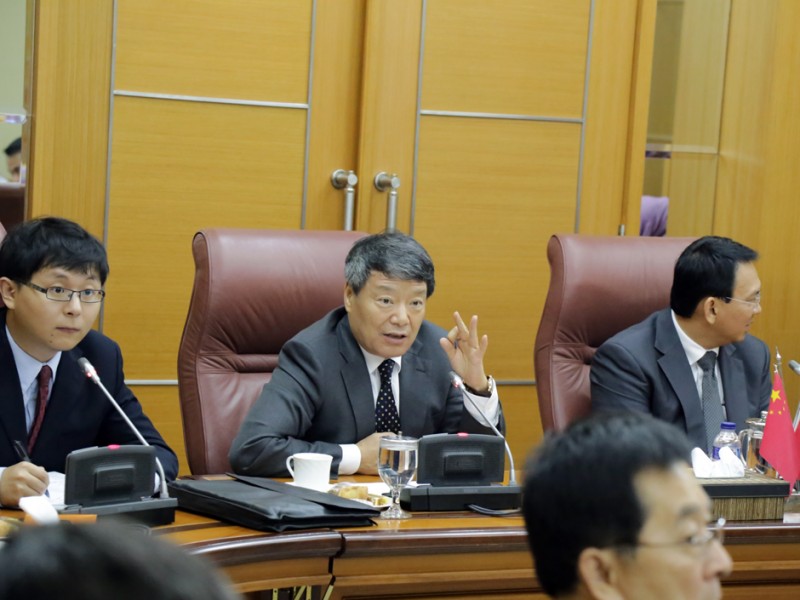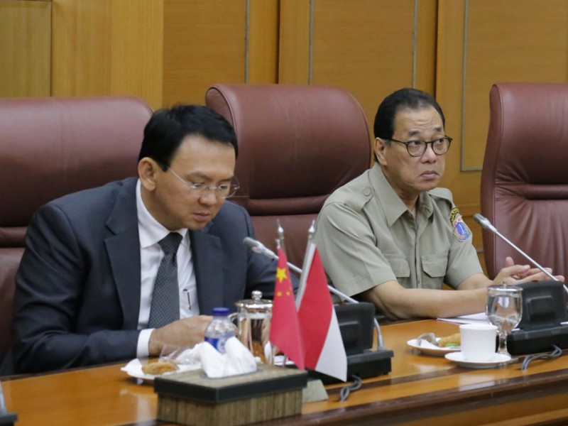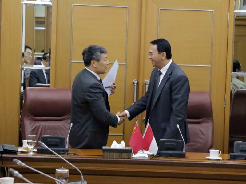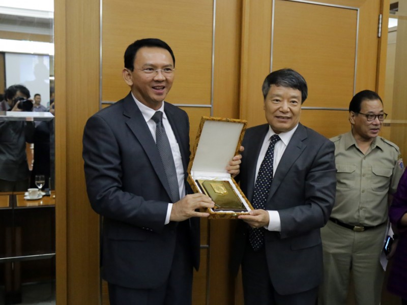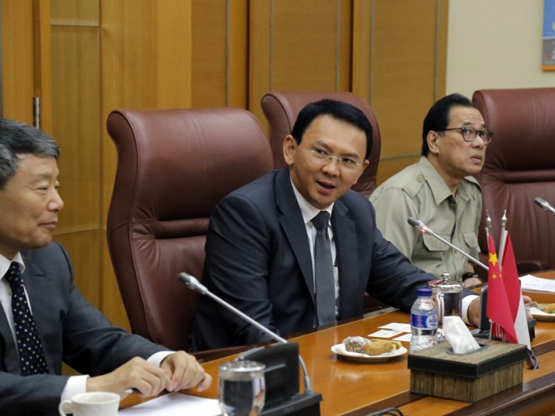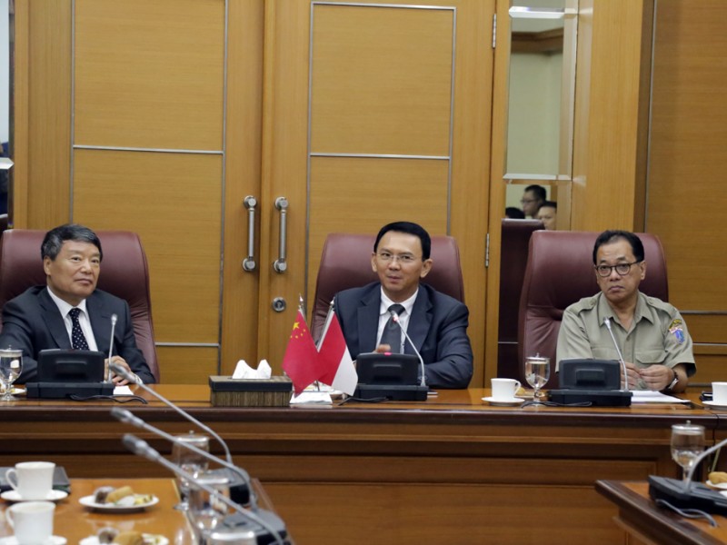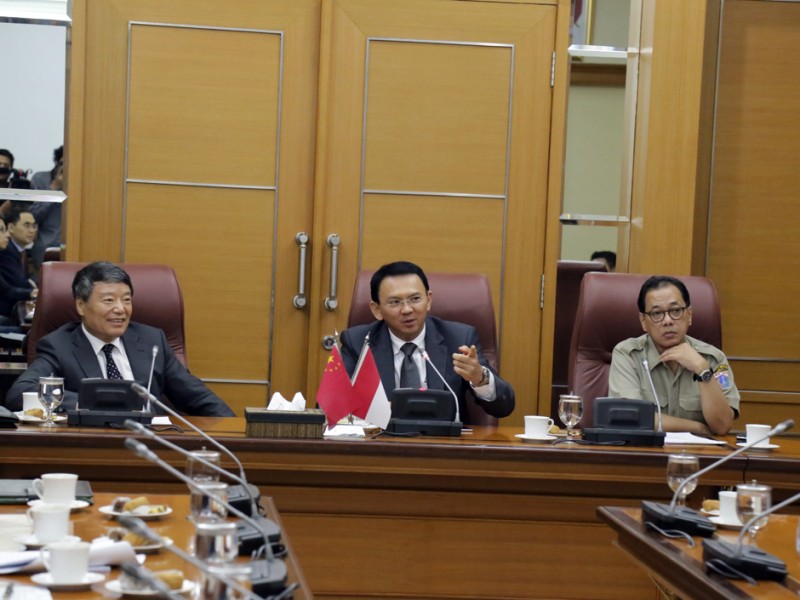 Gubernur DKI Jakarta, Basuki Tjahaja Purnama menerima kunjungan Menteri Komisi Pembangunan Nasional dan Reformasi Republik Rakyat Tiongkok, Xu Shaoshi di Balaikota DKI Jakarta, Selasa (11/08/2015). Dalam pertemuan tersebut dilakukan pembahasan terkait studi kelayakan proyek kereta cepat Jakarta–Bandung. (Foto : Reza/Beritajakarta.com)