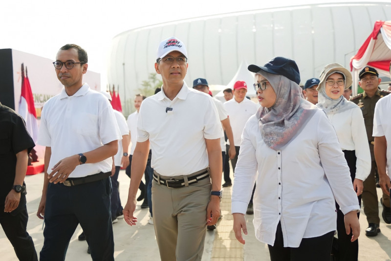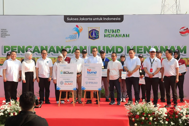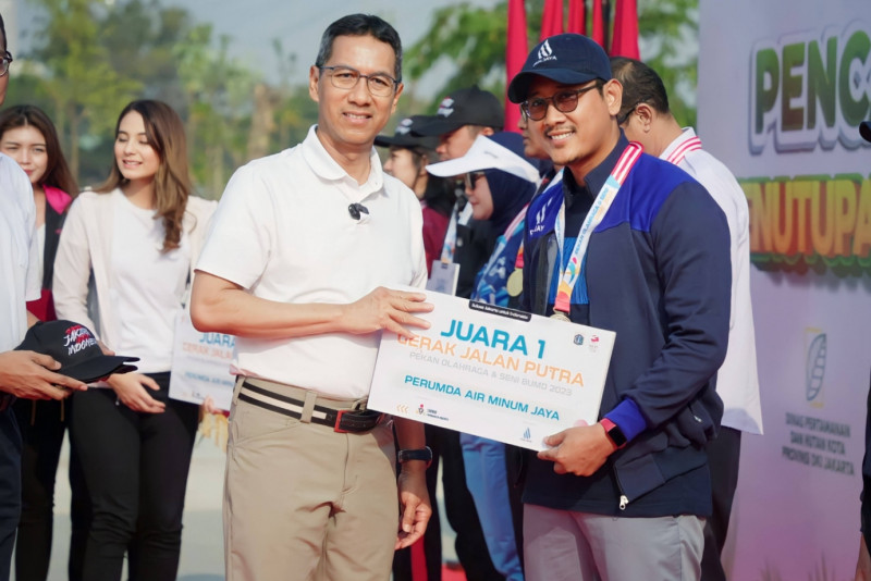 Penjabat (Pj) Gubernur DKI Jakarta, Heru Budi Hartono menutup kegiatan Pekan Olahraga dan Seni (Porseni) di lingkungan BUMD di Taman BMW, Sunter Agung, Tanjung Priok, Jakarta Utara, Senin (21/8). Selain penutupan Porseni Pj Gubernur juga mencanangkan Badan Usaha Milik Daerah (BUMD) Menanam.