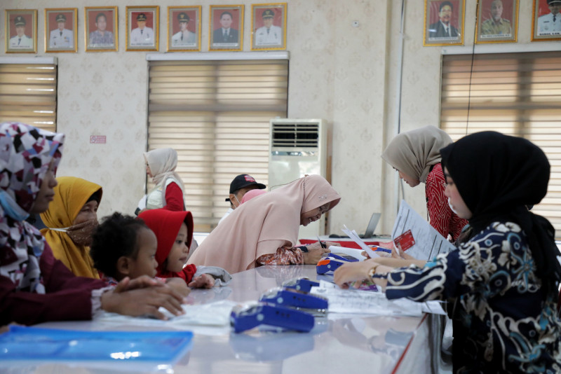 Pemerintah Kota (Pemkot) Jakarta Timur mendistribusikan bantuan sosial (Bansos) Pemenuhan Kebutuhan Dasar (PKD) Tahun 2023 dari Dinas Sosial untuk warga Jakarta Timur, di Aula Kantor Kecamatan Ciracas, Jakarta Timur, Selasa (22/8). Sebanyak 53.895 jiwa yang menerima bantuan PKD di wilayah Jakarta Timur ini.