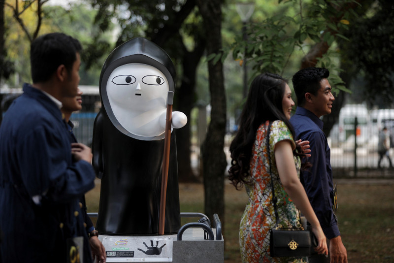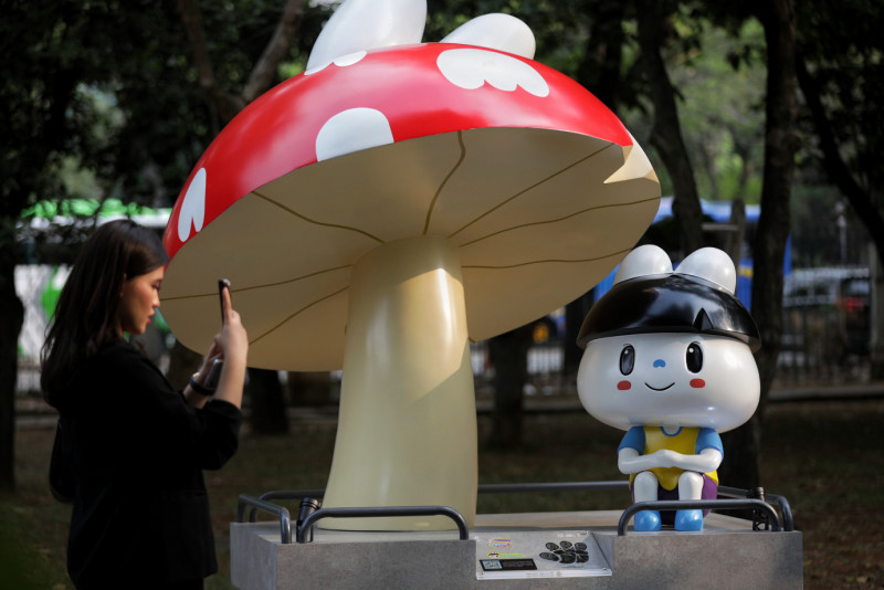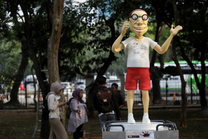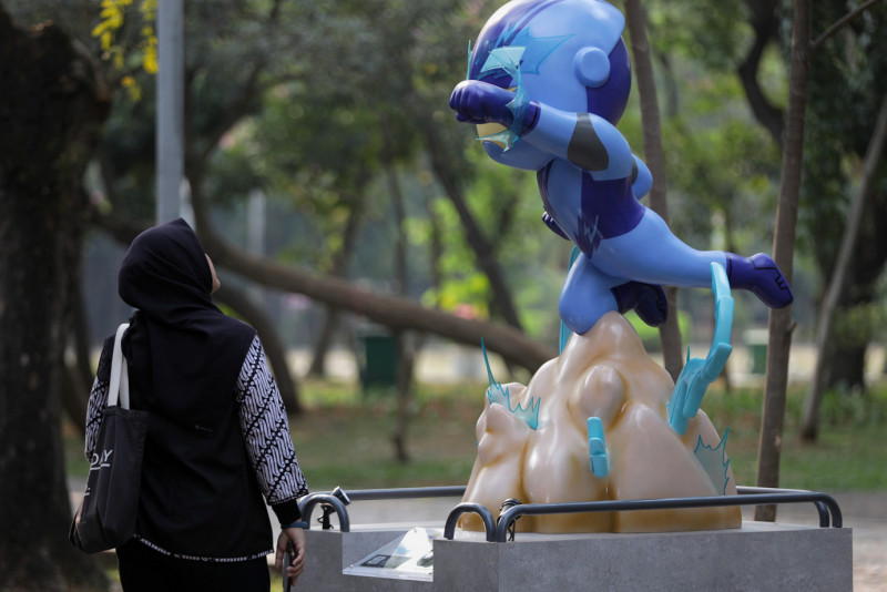Pengunjung sedang melihat sejumlah karya yang dipamerkan pada Festival Karakter Kekayaan Intelektual (FKKI) di Taman Monas Sisi Selatan, Gambir, Jakarta Pusat, Selasa (22/8). Festival yang digelar oleh Dinas Pariwisata dan Ekonomi Kreatif DKI Jakarta bekerja sama dengan Asosiasi Intelektual Properti Kreatif Indonesia (AIPI) ini berlangsung pada 19 Agustus sampai 3 September 2023.