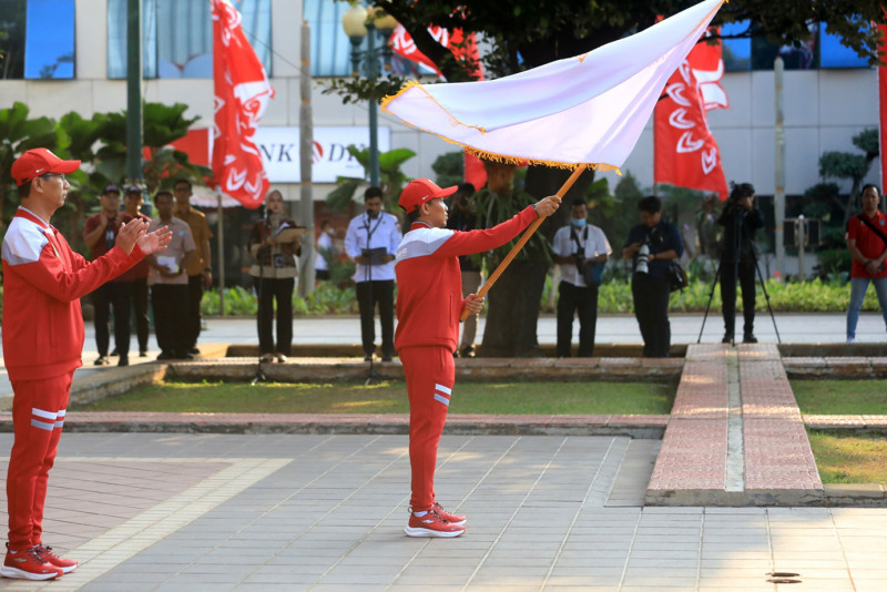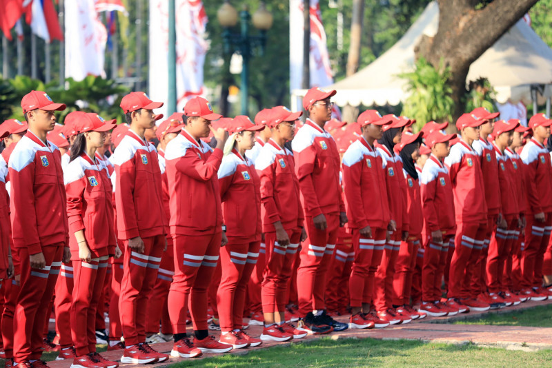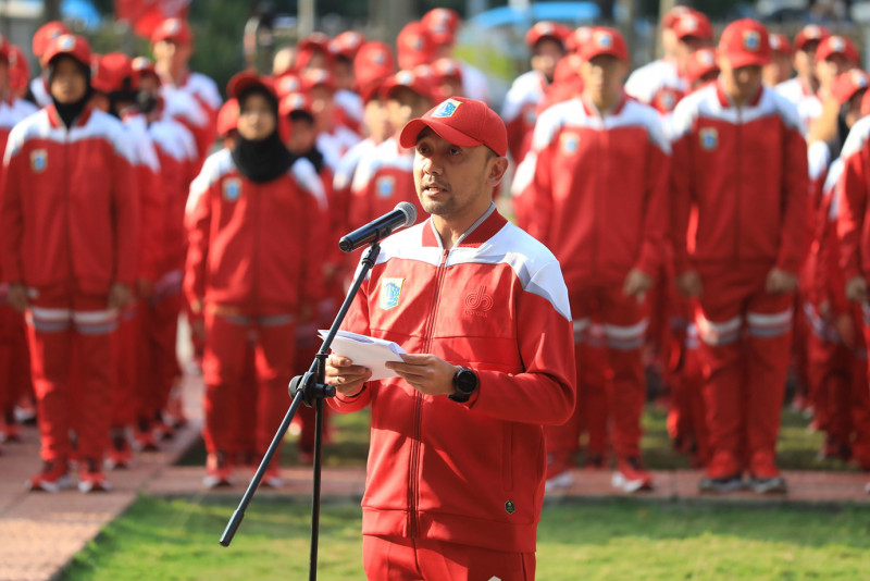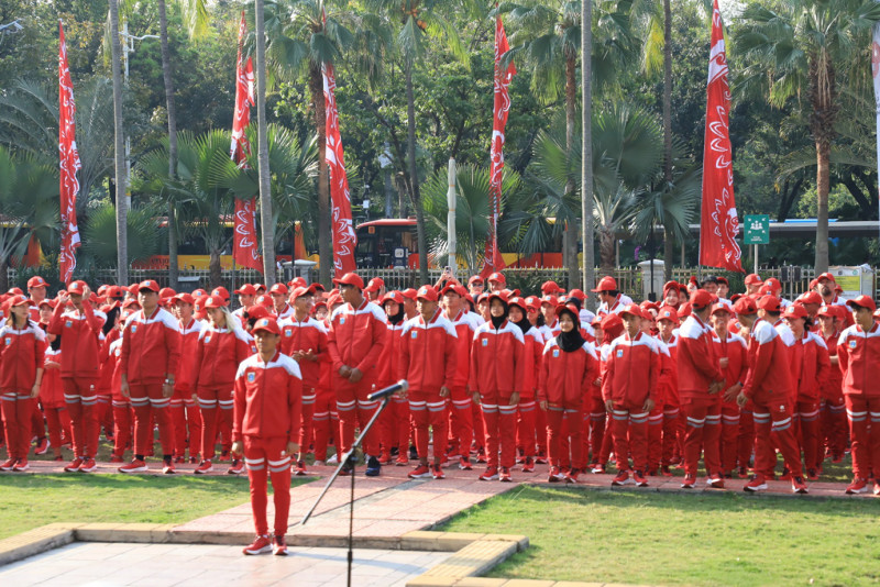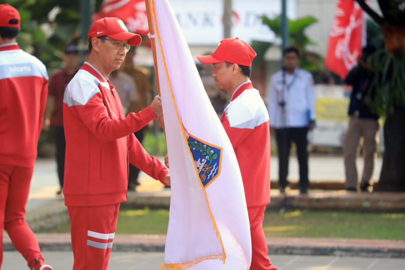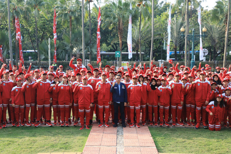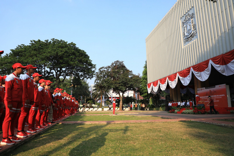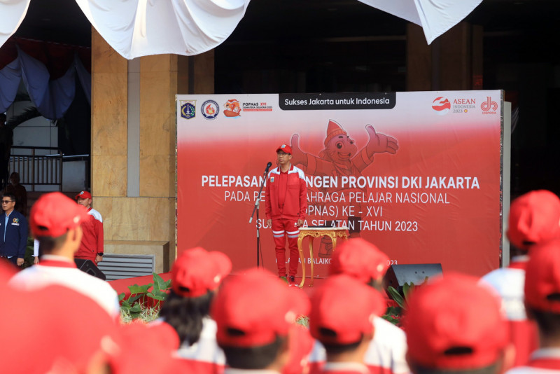 Penjabat (Pj) Gubernur DKI Jakarta, Heru Budi Hartono melepas kontingen DKI Jakarta yang akan berlaga di Pekan Olahraga Pelajar Nasional (Popnas) XVI Palembang, Sumatera Selatan. Heru menargetkan Kontingen DKI Jakarta keluar sebagai juara umum pada kompetisi olahraga multievent tingkat pelajar terbesar di Indonesia yang berlangsung pada 25 Agustus hingga 4 September 2023 tersebut.