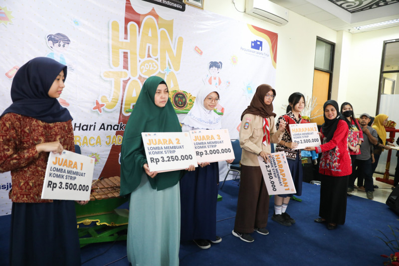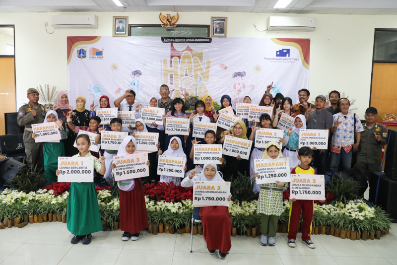 Kepala Dinas Perpustakaan dan Kearsipan (Dispusip) DKI Jakarta, Firmansyah menutup Hari Anak Nasional Jakarta Membaca (Hanjaba) tingkat Kota Jakarta Timur tahun 2023 di Aula Perpustakaan Jakarta Timur, Jatinegara, Kamis (24/8). Penutupan tersebut dibarengi dengan pengumuman para pemenang lomba berbagai kategori yang diselenggarakan pada Hanjaba tingkat Kota Jakarta Timur tahun 2023.