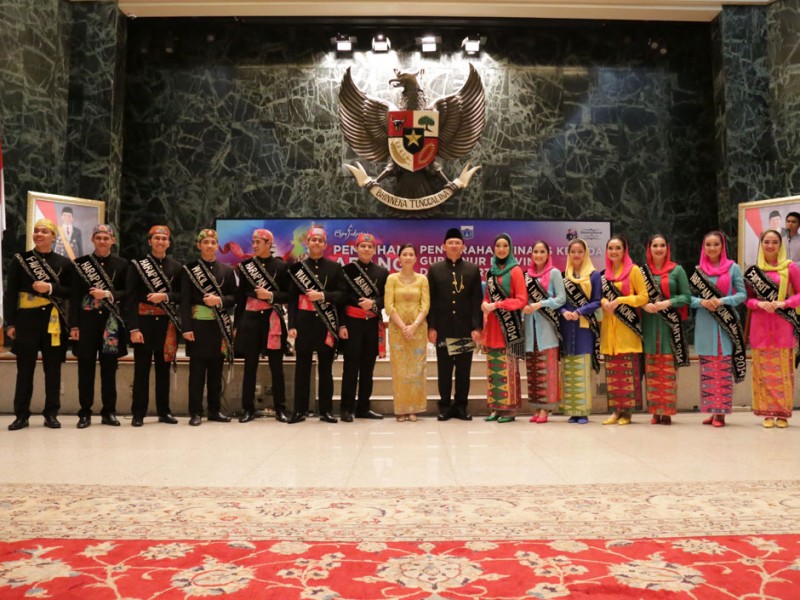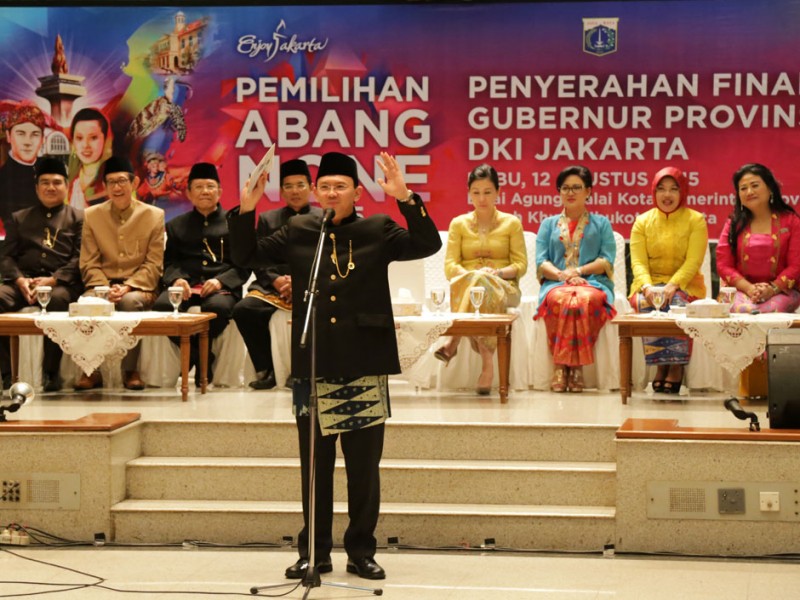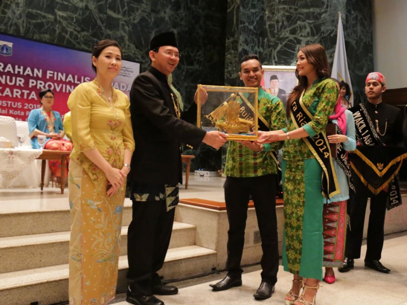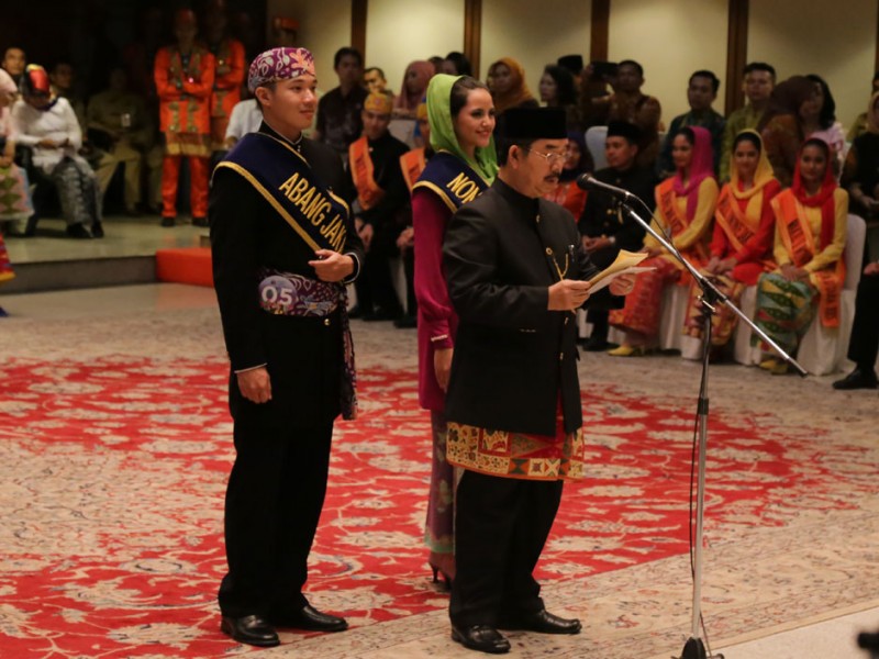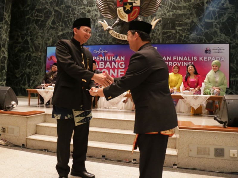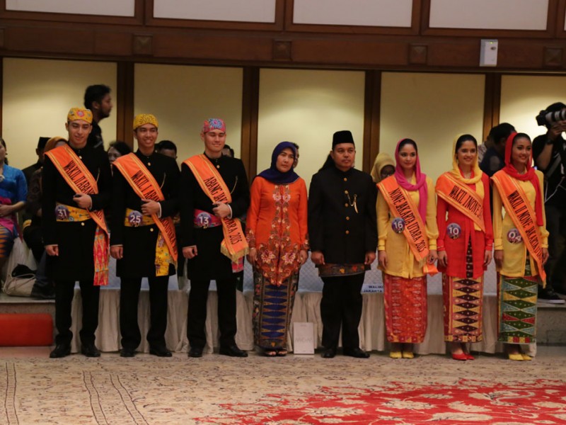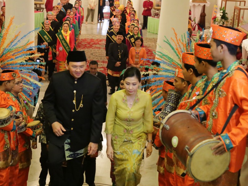Gubernur DKI Jakarta, Basuki Tjahaja Purnama menerima penyerahan 18 finalis Abang dan None (Abnon) dari 5 wilayah Kota dan Kabupaten Administrasi Kepulauan Seribu, Rabu (12/08/2015). Prosesi serah terima dari Walikota dan Bupati kepada Basuki berlangsung di Balaikota DKI Jakarta. (Foto : Reza/Beritajakarta.com)