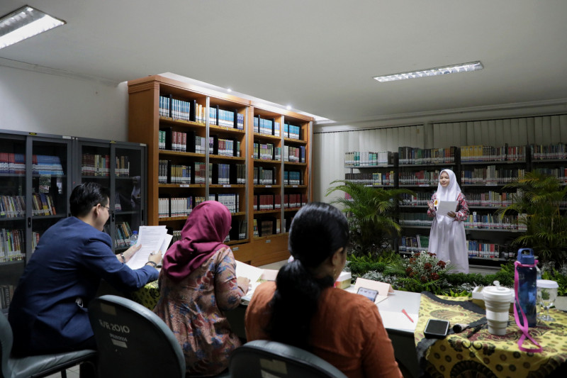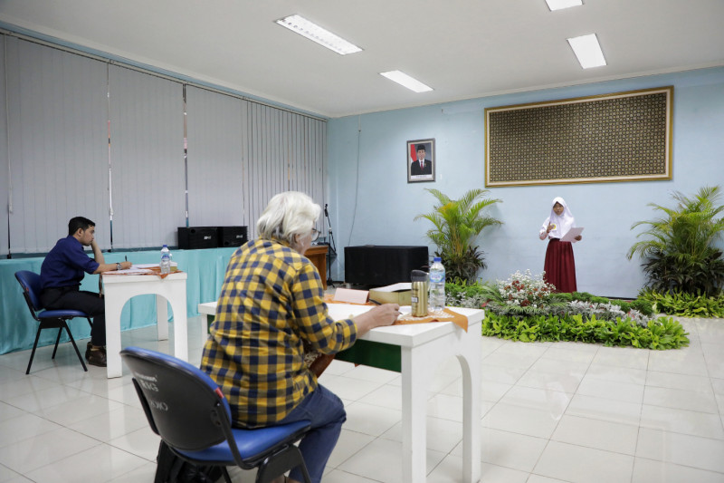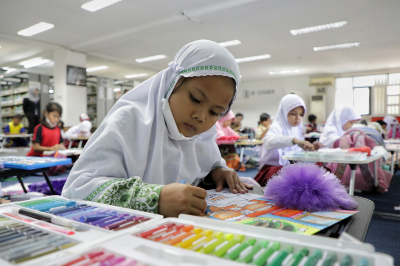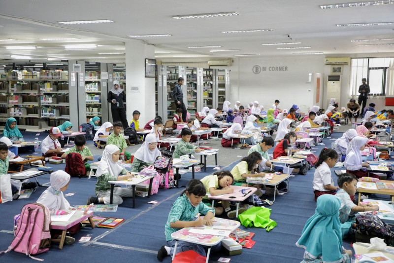 Suku Dinas Perpustakaan dan Kearsipan Jakarta Selatan menggelar kegiatan Hari Anak Jakarta Membaca (HANJABA) Tingkat Kota Jakarta Selatan Tahun 2023 di kantor Suku Dinas Perpustakaan dan Kearsipan Jakarta Selatan, Jalan Gandaria Tengah V 002/01, Kramat Pela, Kebayoran Baru, Jakarta Selatan, Selasa (29/8). Berbagai macam lomba diperlombakan yakni lomba menggambar dan mewarnai, lomba bercerita, lomba membacakan puisi dan lomba membuat komik strip, serta lomba pidato bahasa Indonesia.