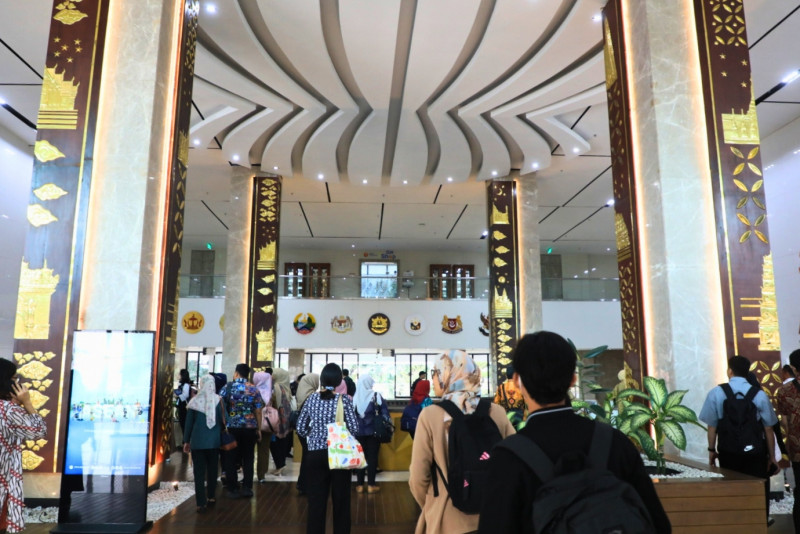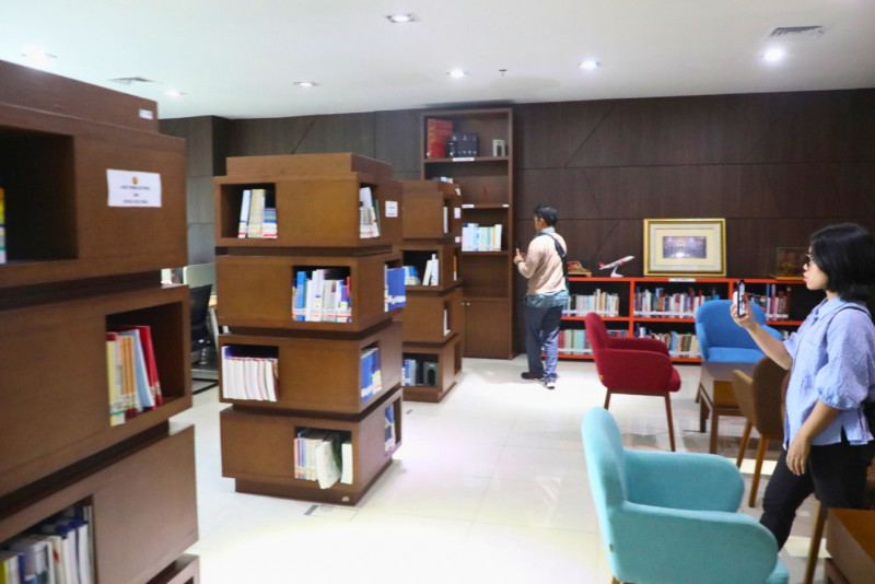Sebanyak 120 peserta Bimbingan Teknis (Bimtek) Pengelola Media Sosial Pemerintah terkait Konferensi Tingkat Tinggi (KTT) ke-43 ASEAN melakukan visitasi ke kantor Sekretariat ASEAN di Jalan Sisingamangaraja, Selong, Kebayoran Baru, Jakarta Selatan, Selasa (29/8). Para peserta diajak berkeliling seperti ruang perpustakaan, galeri, ruangan penjualan cinderamata, serta ruangan aula.
