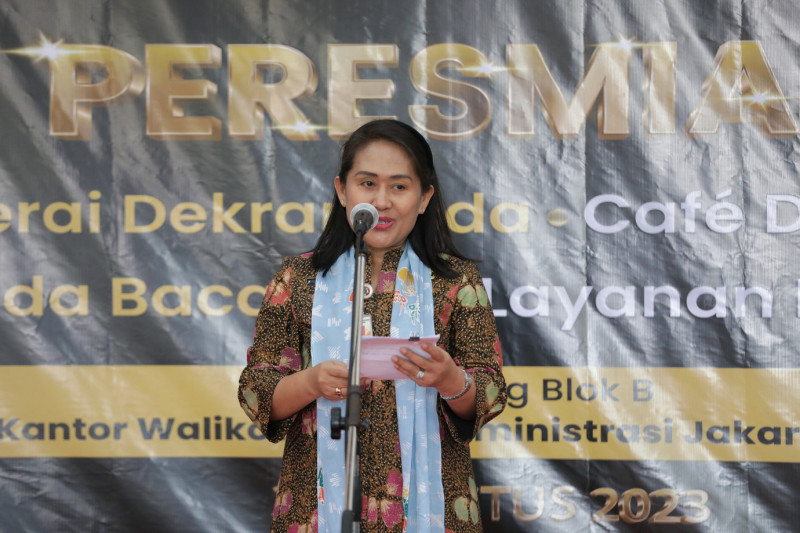 Pejabat (Pj) Ketua Dewan Kerajinan Nasional Daerah (Dekranasda) DKI Jakarta, Mirdiyanti Heru meresmikan gerai Dekranasda Kota Jakarta Barat, beranda baca, unit pelayanan disabilitas dan cafe difabis di loby lantai satu gedung blok B Kantor Wali Kota Jakarta Barat, Rabu (30/8). Diharapkan keberadaan gerai Dekranasda ini bisa maju dan menampung perajin-perajin di sekitar Jakarta Barat. Begitu juga dengan keberadaan beranda baca, unit layanan disabilitas dan cafe difabis.