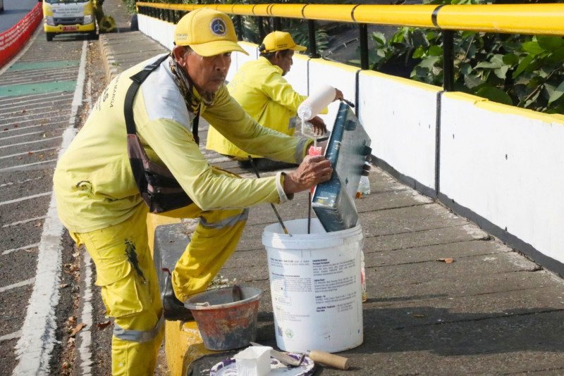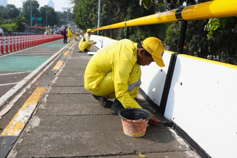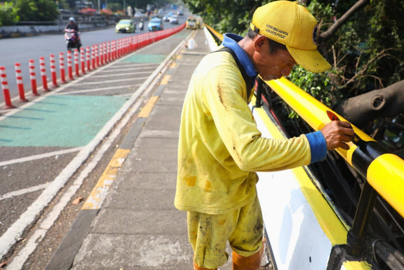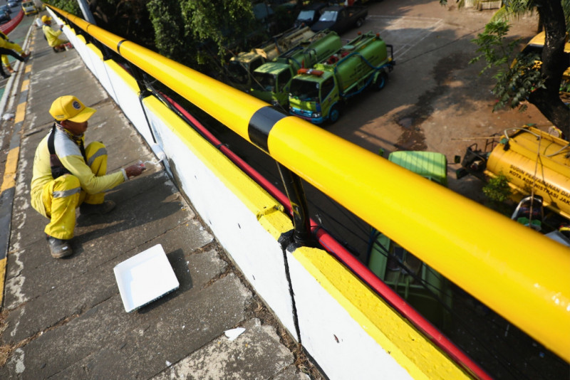 Sudin Bina Marga Jakpus Cat Kembali Railing FO Jalan Hos Cokroaminoto