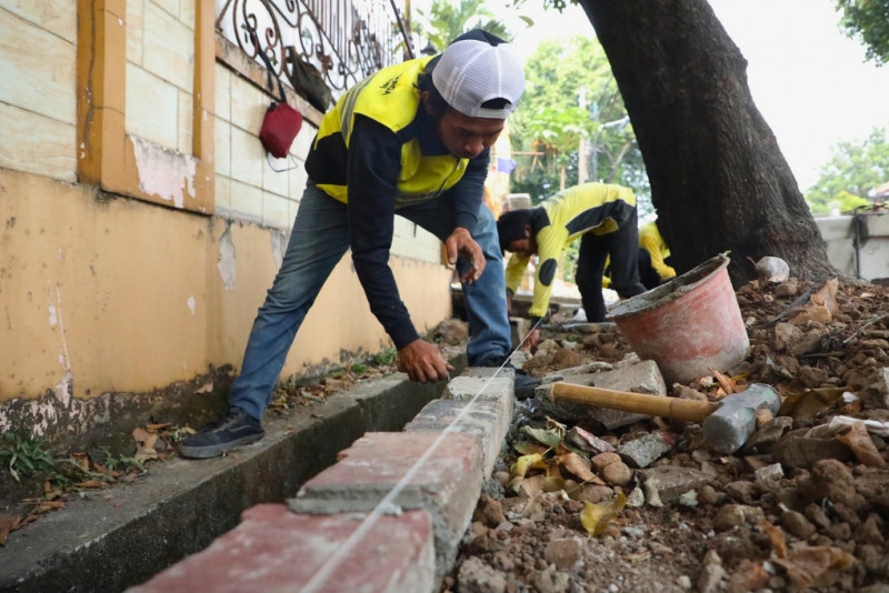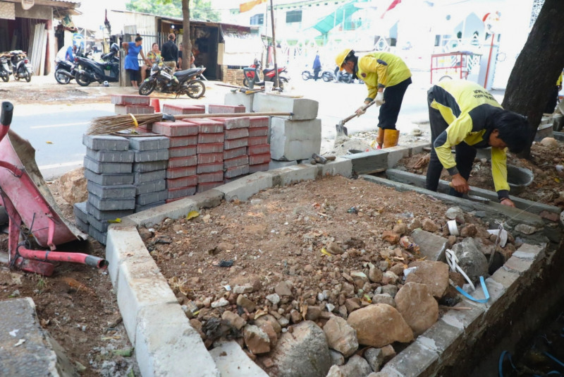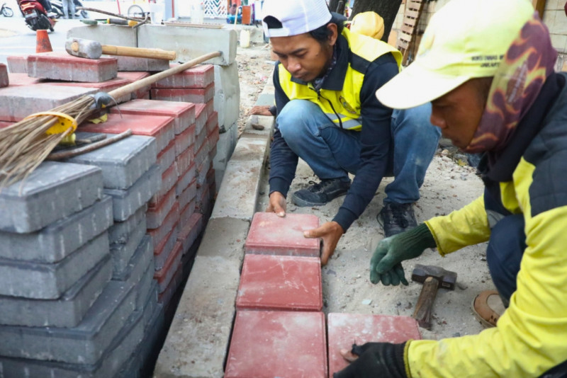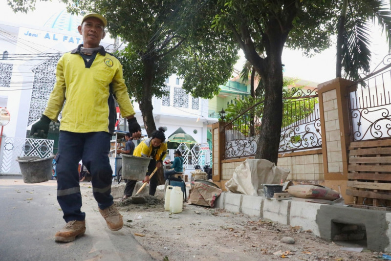 Proses Pembangunan Trotoar di Jalan Swadaya Raya