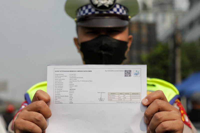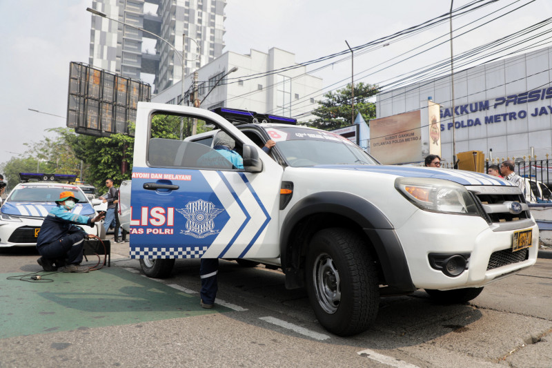 Dinas Lingkungan Hidup DKI Jakarta bersama Subdit Gakkum Dirlantas Polda Metro Jaya melakukan uji emisi bagi kendaraan dinas anggota Subdit Gakkum Dirlantas Polda Metro Jaya di Kantor Subdit Gakkum Dirlantas Polda Metro Jaya, Jalan Tebet Barat Dalam Raya, Kelurahan Tebet Barat, Kecamatan Tebet, Jakarta Selatan, Jumat (01/9). Dari 10 mobil dinas jajaran Subdit Gakkum Ditlantas Polda Metro Jaya yang menjalani uji emisi, seluruhnya dinyatakan lolos uji emisi.