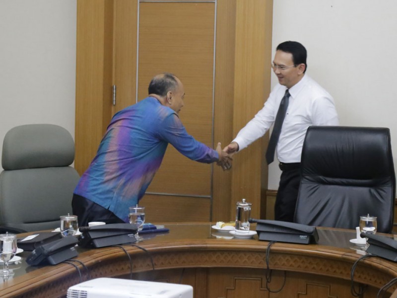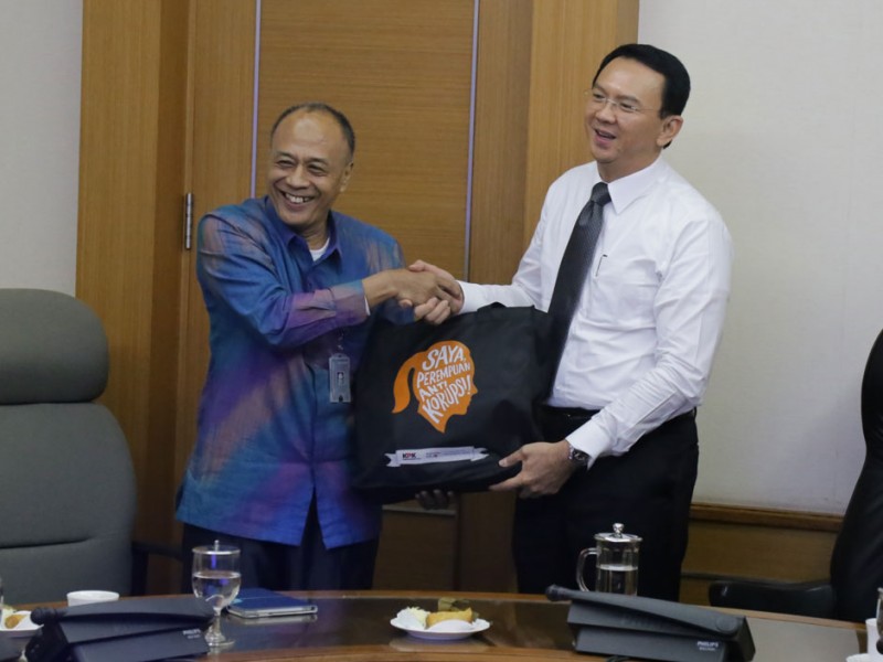 Jajaran Komisi Pemberantasan Korupsi (KPK) dipimpin Sekretaris Jenderal KPK, Himawan Adinegoro menemui Gubernur DKI Jakarta, Basuki Tjahaja Purnama, di Balaikota DKI Jakarta, Kamis (13/08/2015). Dalam kesempatan tersebut, Himawan meminta bantuan Basuki untuk membantu sosialisasi pencegahan korupsi melalui gerakan Saya, Perempuan Anti Korupsi (SPAK) dan Sembilan Nilai Moral (SEMAI).(Foto : Reza/Beritajakarta.com)
