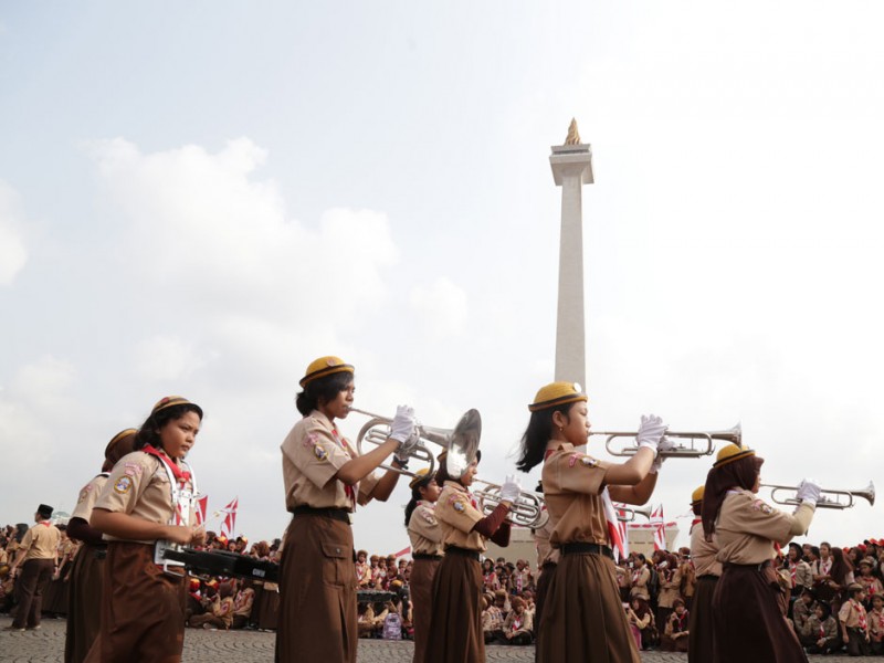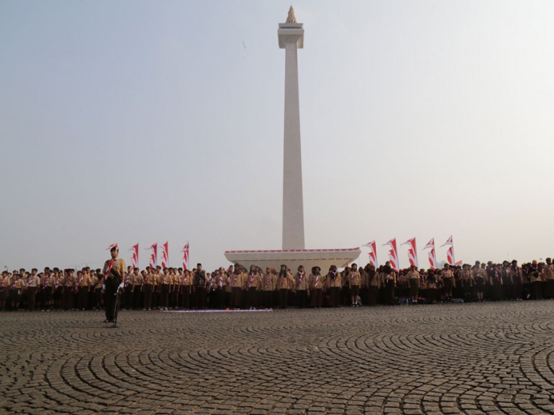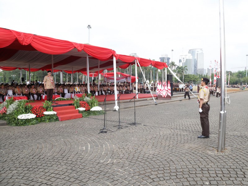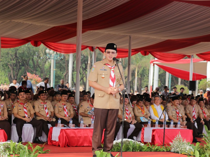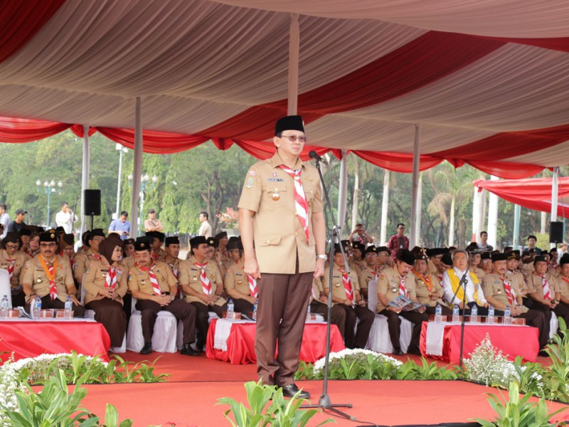 Gubernur DKI Jakarta, Basuki Tjahaja Purnama bertindak sebagai Inspektur Upacara (Irup) memperingati HUT ke-54 Pramuka di kawasan Silang Monas, Gambir, Jakarta Pusat, Jumat (14/08/2015). Peringatan HUT ke-54 Pramuka mengambil tema Pramuka Garda Terdepan Pelaku Perubahan dalam Pembentukan Karakter Kaum Muda.(Foto: Reza / Beritajakarta.com)