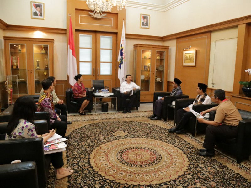 Gubernur DKI Jakarta, Basuki Tjahaja Purnama menerima jajaran Direksi High Scope Indonesia di Balaikota DKI Jakarta, Jumat (14/08/2015). Dalam pertemuan tersebut disampaikan kepada Basuki terkait usulan pemanfaatan aset milik Pemerintah Provinsi DKI Jakarta. (Foto: Reza/beritajakarta.com)