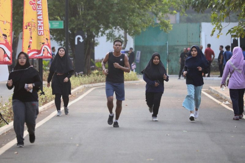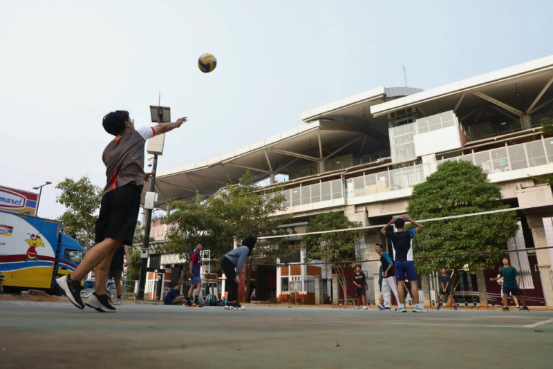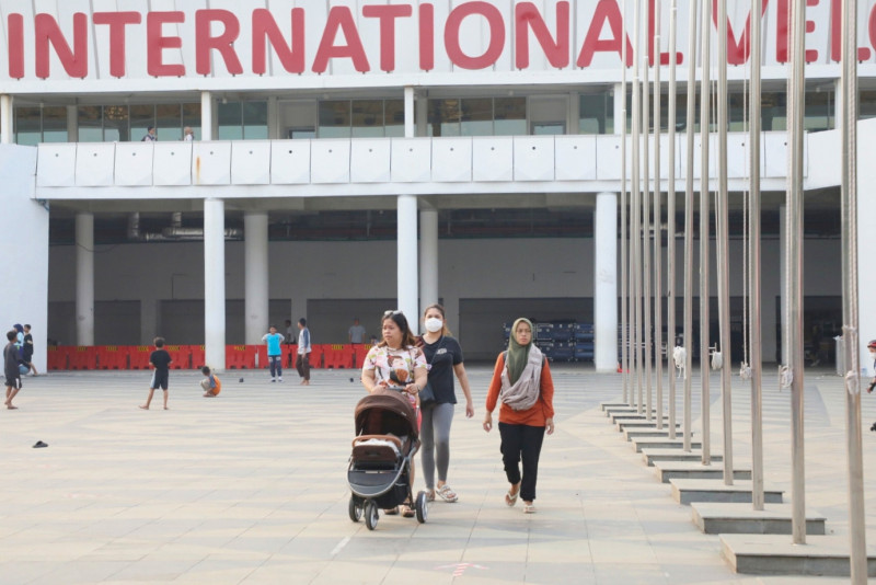 Melihat aktivitas warga menikmati akhir pekan di Jakarta International Velodrome, Pulo Gadung, Jakarta Timur, Sabtu (9/9). Sejumlah aktivitas yang dilakukan warga seperti berolahraga hingga sekedar bersantai bersama keluarga.