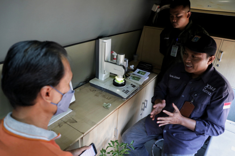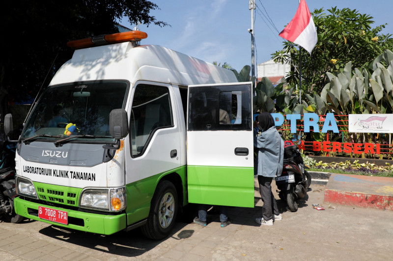 Pusat Pengembangan Benih dan Proteksi Tanaman Dinas Ketahanan Pangan Kelautan dan Pertanian (P2BPT DKPKP) DKI Jakarta menggelar Mobil Klinik Tanaman di RPTRA Kebon Pala Berseri, Makasar, Jakarta Timur, Selasa (12/9). Kegiatan Mobil Klinik Tanaman ini bertujuan untuk mengedukasi masyarakat tentang pengetahuan dasar terkait hama dan penyakit tanaman.