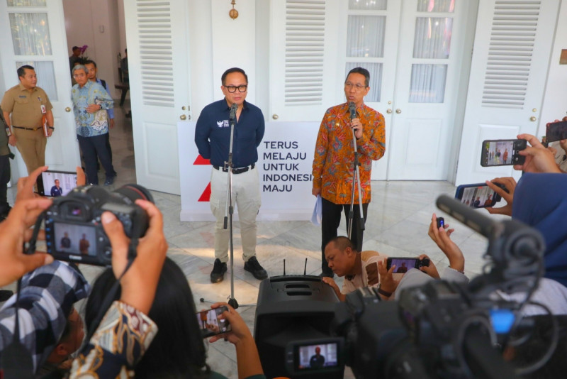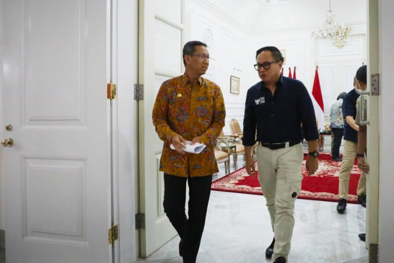 Penjabat (Pj) Gubernur DKI Jakarta, Heru Budi Hartono menerima Wakil Menteri Badan Usaha Milik Negara (Wamen BUMN) RI, Kartika Wirjoatmodjo di ruang tamu gubernur, Balai Kota DKI Jakarta, Selasa (12/9). Pertemuan ini membahas peran kementerian dalam mengatasi polusi di Jakarta serta dukungan percepatan jaringan gas bagi masyarakat dan mendorong agar penggunaan diesel dikonversi menggunakan listrik.